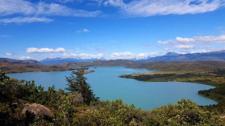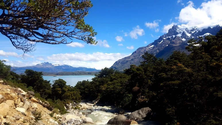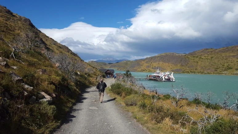 W의 왼쪽 아래, 즉 나의 출발지점으로 가려면 국립공원 입구를 지나 페리 선착장에서 배를 타야한다. 국립공원 입구에서 입산 신고서를 쓰고 티켓을 사면 버스는 다시 30분 정도를 달려 작은 선착장에서 멈춘다. 거기서 또 배로 30분, 저멀리 거대한 봉오리와 빙하가 보이는 곳, 파이네 그란데(Paine Grande)에서 트래킹을 시작했다.