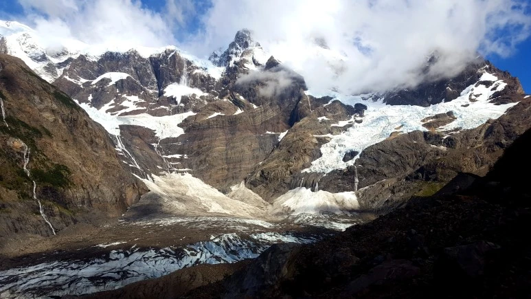 오늘은 W의 가운데까지 걸어서 빙하를 멀리서 바라보고 첫날밤을 보낼 캠핑장으로 향했다. Mirador(전망대)에서 빙하를 볼 때 쯤엔 세찬 바람에 빗방울이 얼굴을 세게 때려 꼭 우박 같았다. 그래도 조금이라도 느끼려고 얼굴을 방패삼고 서서 거대한 산과 그 위의 빙하를 바라 보았다.
