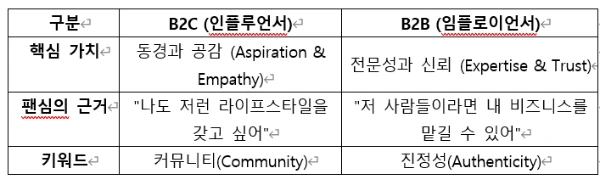 B2C: 인플루언서(influencer), '동경'에서 '공감과 가치'의 아이콘으로