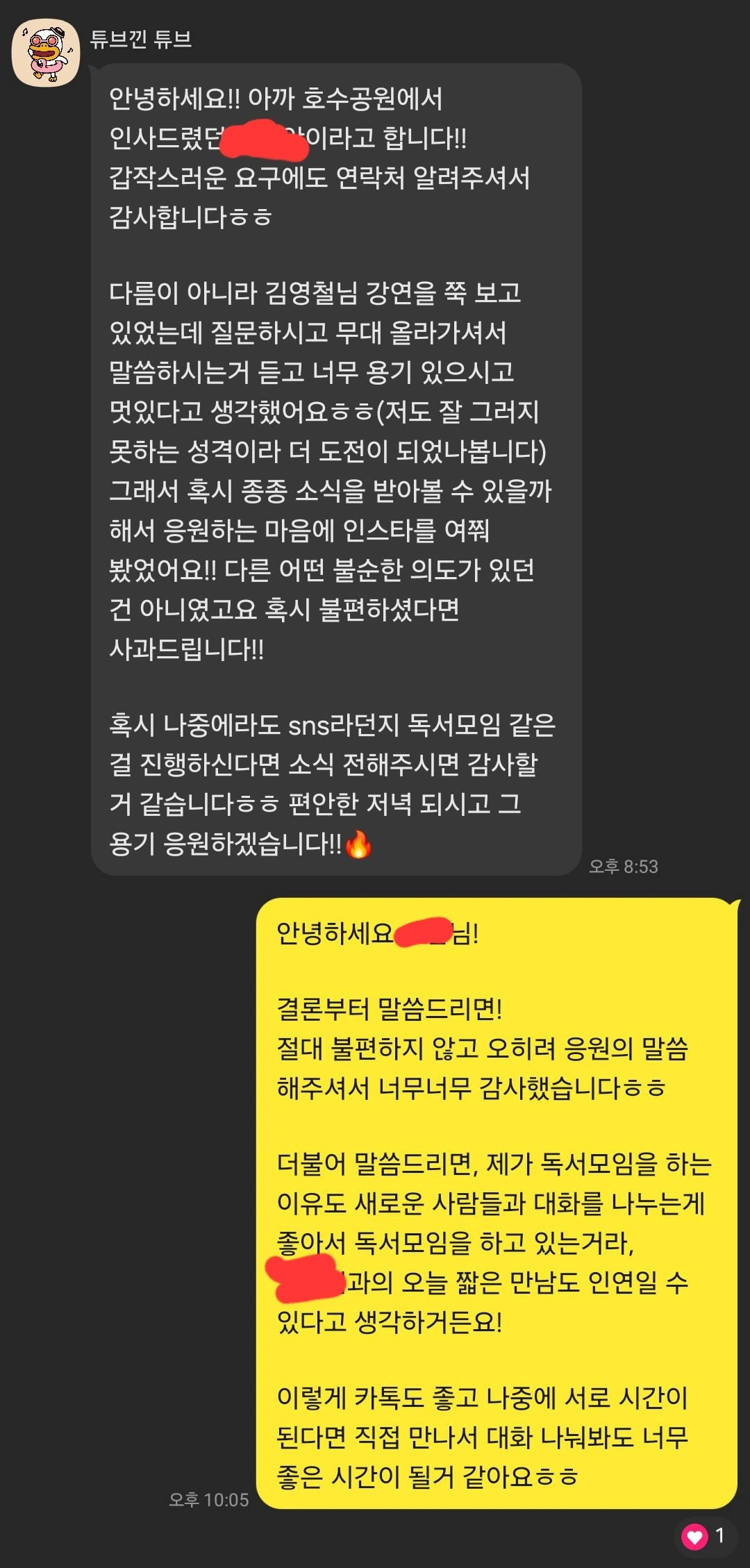 (이후에 동갑이라는 것을 알게 됐고 지금은 나의 친구이자, 우리 독서모임의 모임원이다.)