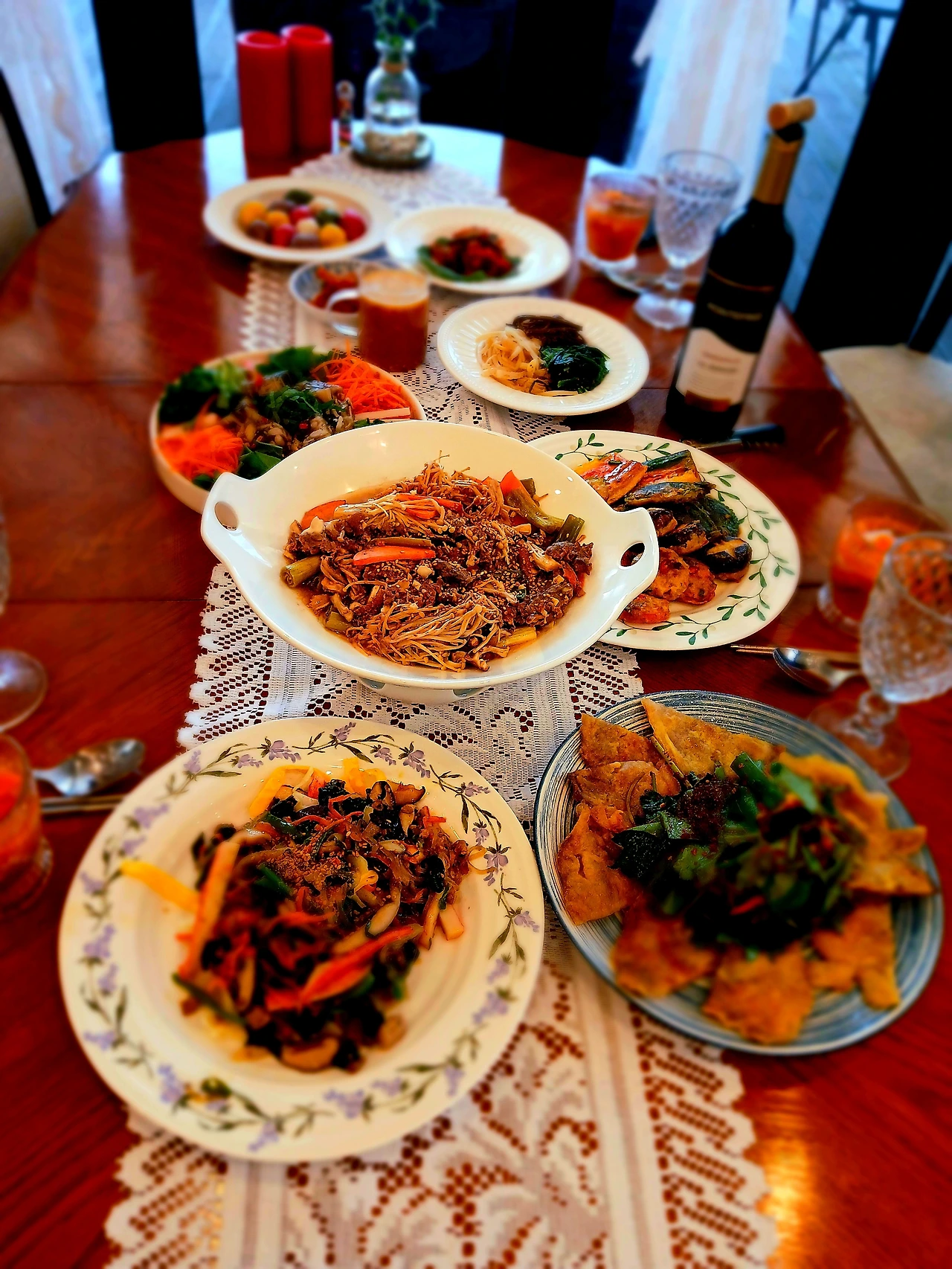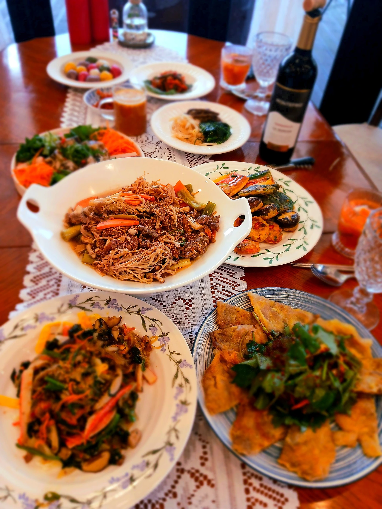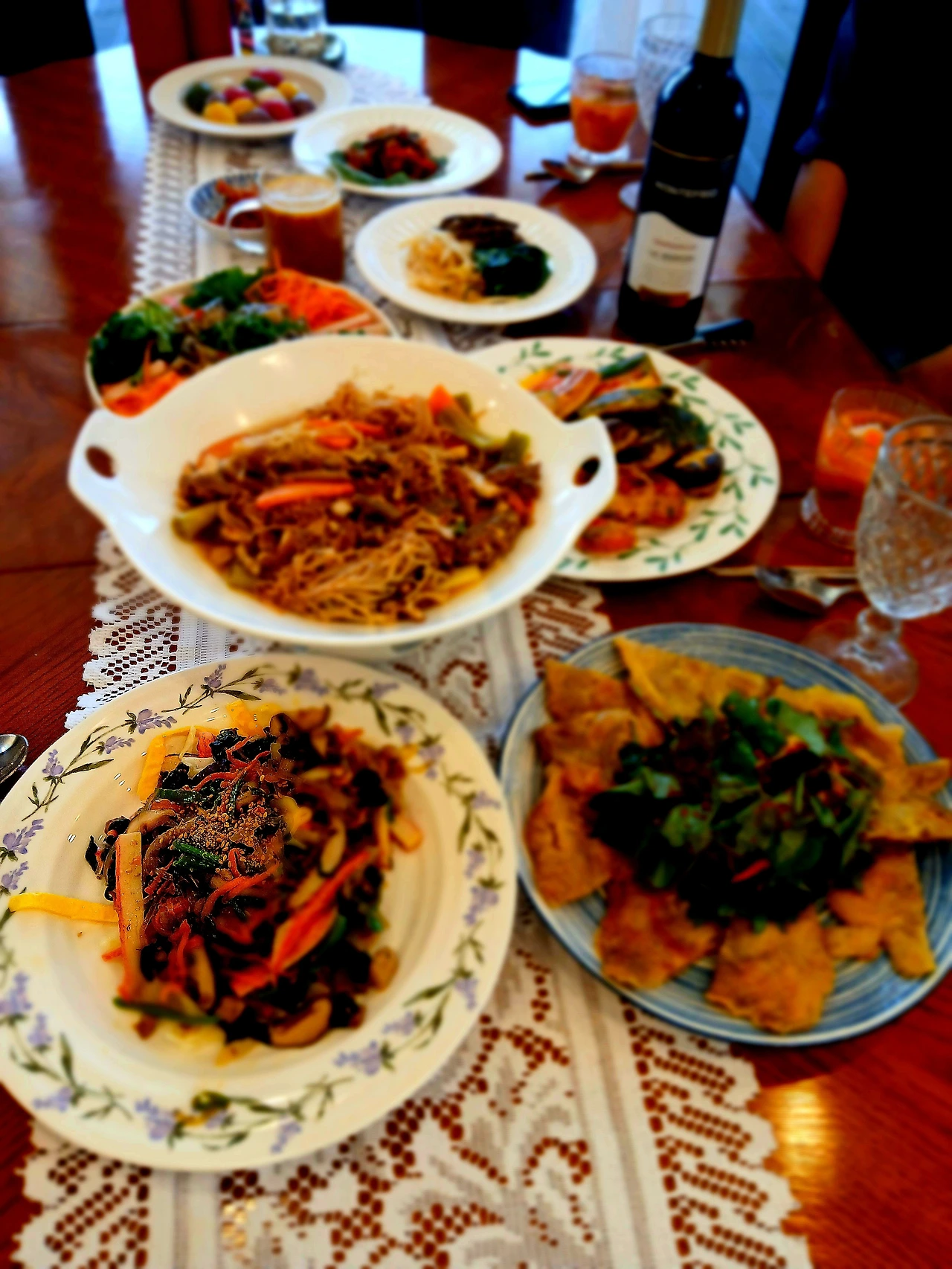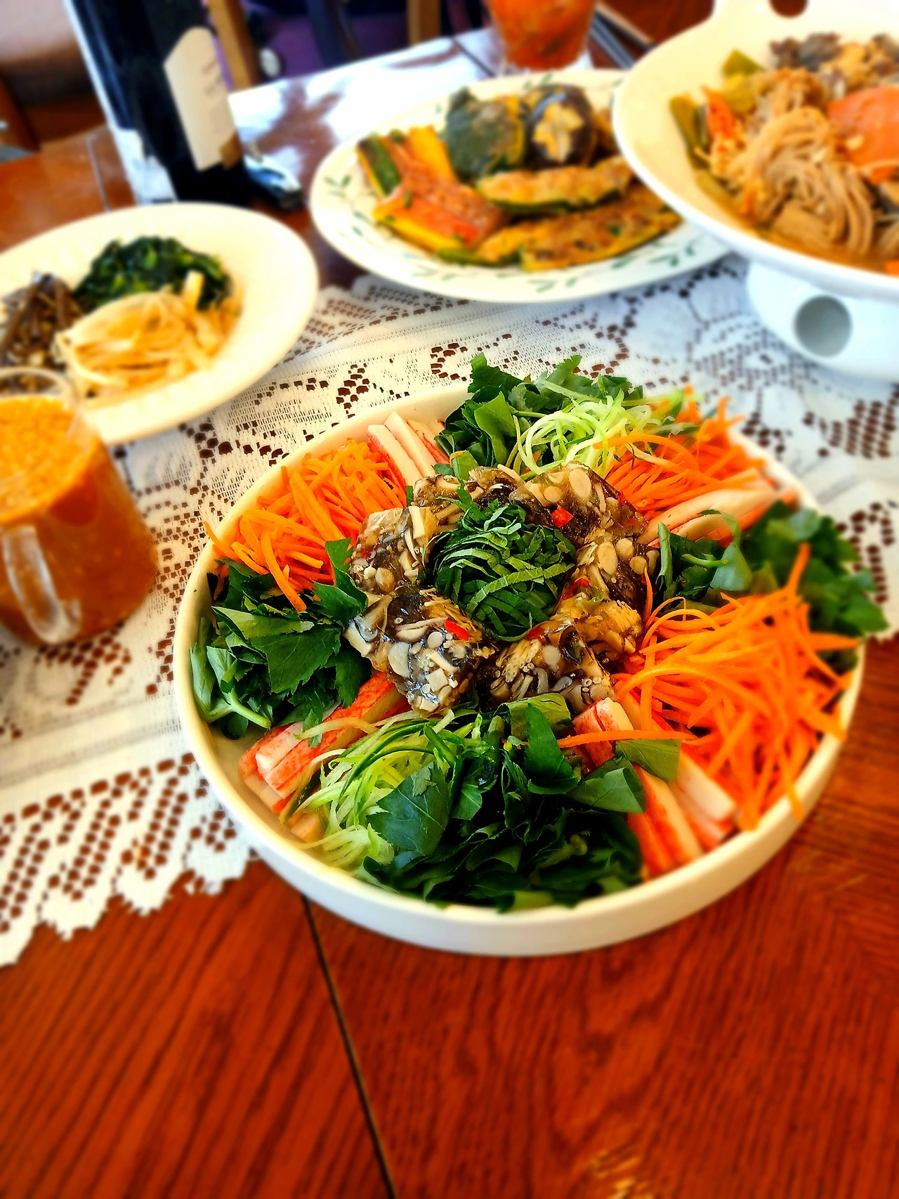 삶은 오징어랑 도라지를 같이 무쳐서 명절음식의 느끼함을 또 한번 잡아 주었어요. 추석은 이렇게 지나고 웃음이 번지는 식탁에서 와인 한 잔 나누고, 식사 기도를 하는 순간은 정말 장엄해요. 서로의 마음을 너무도 잘 알것 같은 그 따뜻한 식탁에 우리가 또 이렇게 둘러 앉았으니 올 한해도 이만하면 됬습니다.