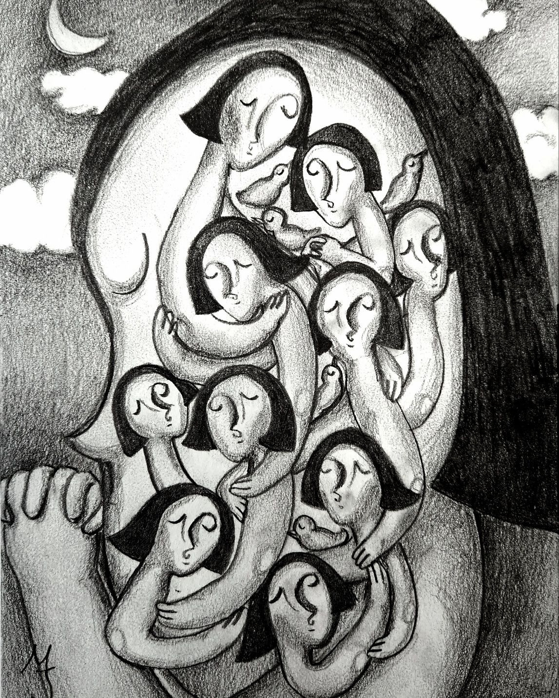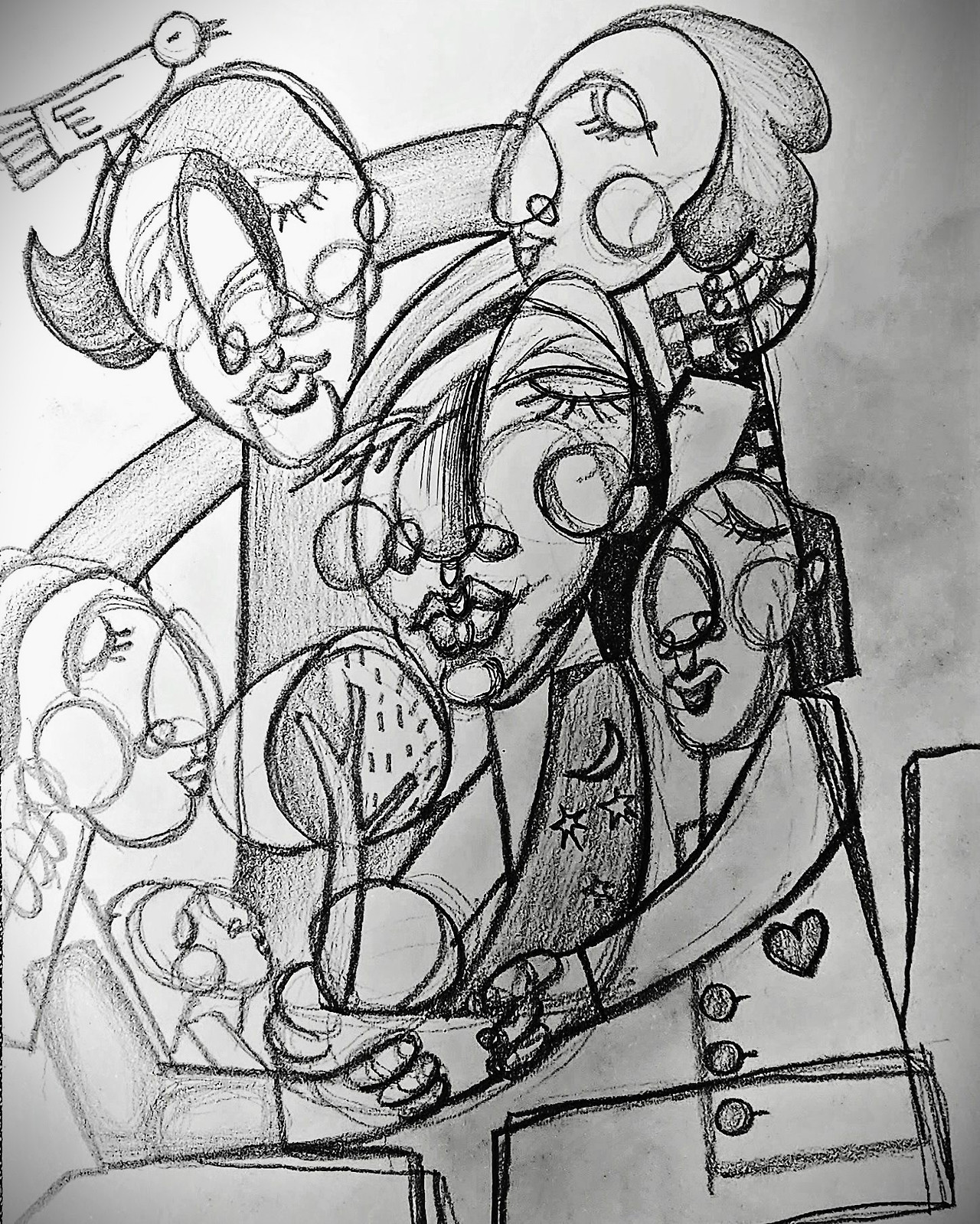 놀란 눈을 동그랗게 뜨고 날 바라보던 어린 왕자와 자매들 그리고 남편과 두 아이 모두에게 나의 마음을 전하고 싶었다. 단순하고 가볍게 그린 형체들, 그 속에 소중한 사람들을 향한 사랑이란 메시지를 담아보았다.