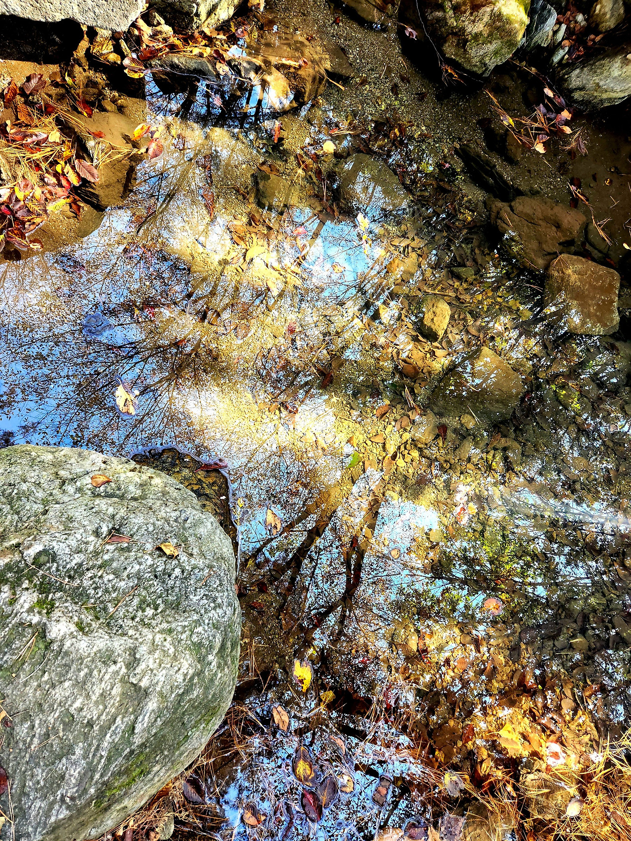 큰아이는 닫혀있던 뚜껑을 열고 조심스럽게 물 안으로 통을 내리며 가재를 고향으로 돌려보내 주었다. 물속으로 들어간 가재는 자신의 집으로 돌아가자 잽싸게 바위틈으로 몸을 숨겼다. 그 모습을 지켜보던 두 아이는 ‘안녕! 잘 살아!’ 인사하며 서운한 마음에 잠시 바위 위에 서서 잔잔한 물결을 바라보았다. 난 물속에 비치는 생기를 담은 하늘과 나무 그리고 풀이 일렁이는 푸른 물결이 참 곱게 느껴졌다.