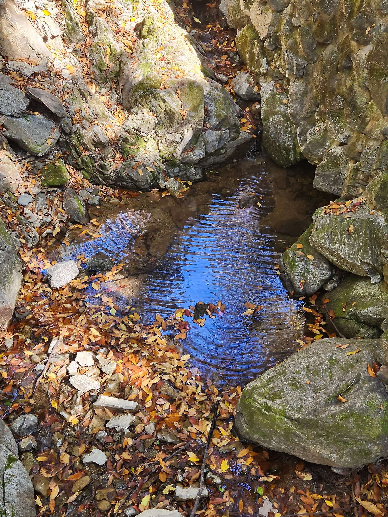 길이 잘 닦여져 있어서 아이들에게도 무리가 되지 않아 종종 자주 찾던 곳이라 매우 익숙하다 보니 둘은 바위 앞으로 먼저 달려가 있었다. 계곡물은 졸졸 소리를 내며 흐르고 있었다.