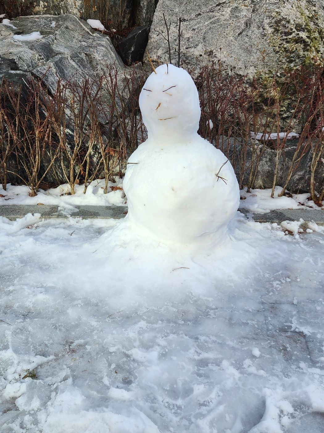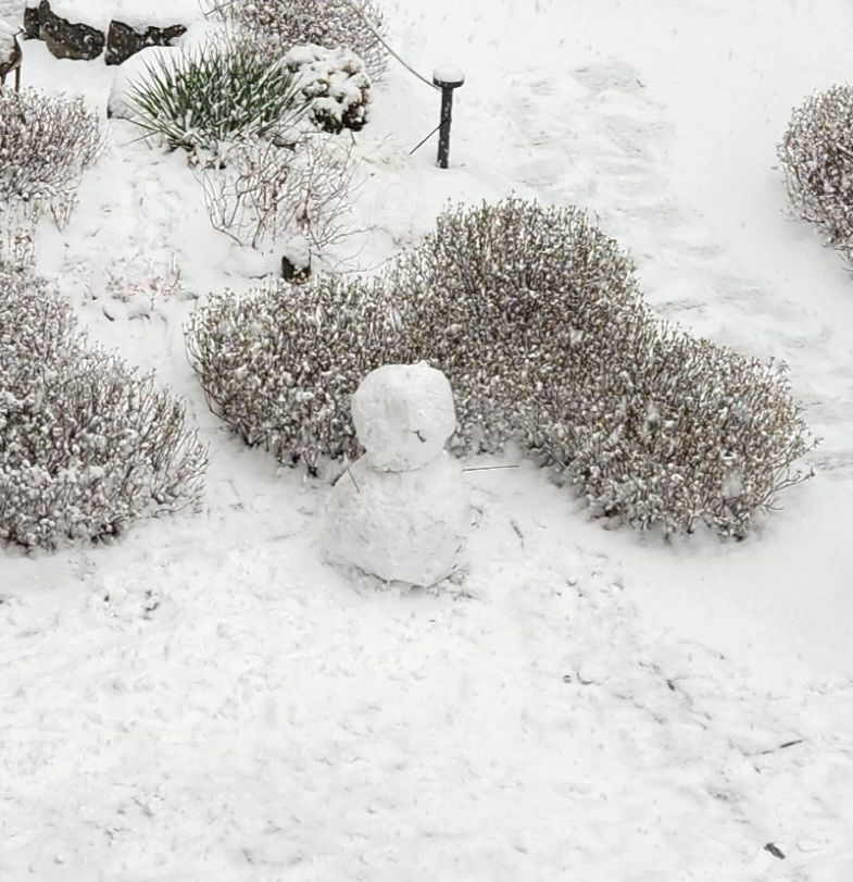 그래서인지 나뿐만이 아니라 지나가는 이웃들의 눈길도 끌며 인기 만점인 눈사람은 길모퉁이에서 웃음을 자아내게 하고 있다.