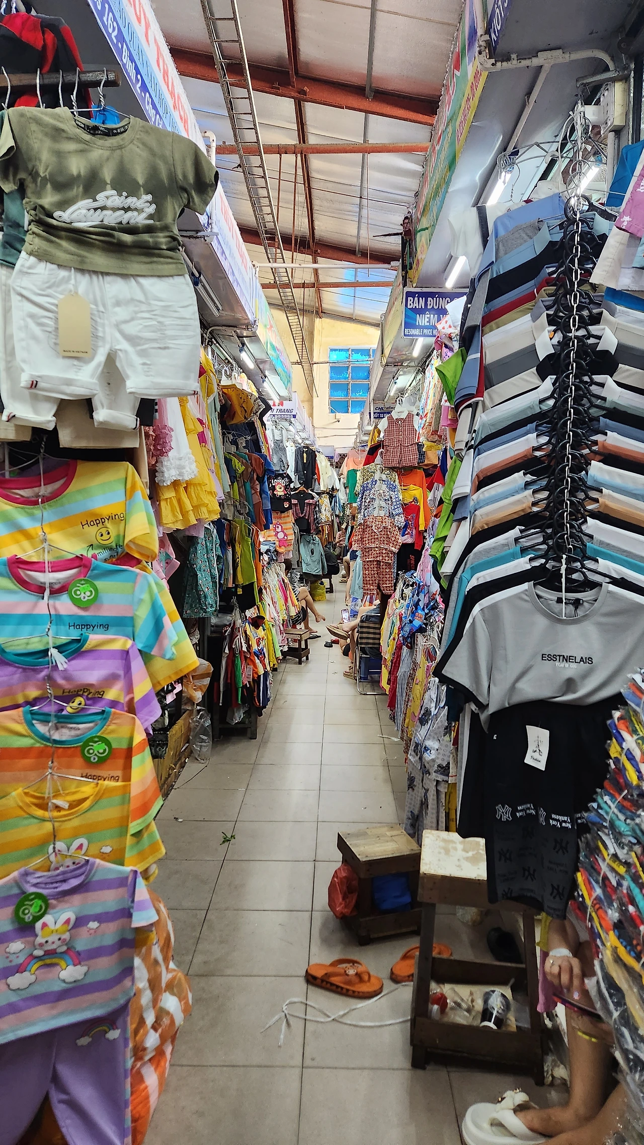 큰 간판 밑이 주 출입구이지만 출입구가 한 두 군데가 아니다. 내가 처음 들어간 곳은 옷가지를 파는 곳이었는데, 사람 한 명 겨우 지나갈 정도의 좁은 길 양옆에 천장에 다을만큼 다양한 옷들이 즐비하다.