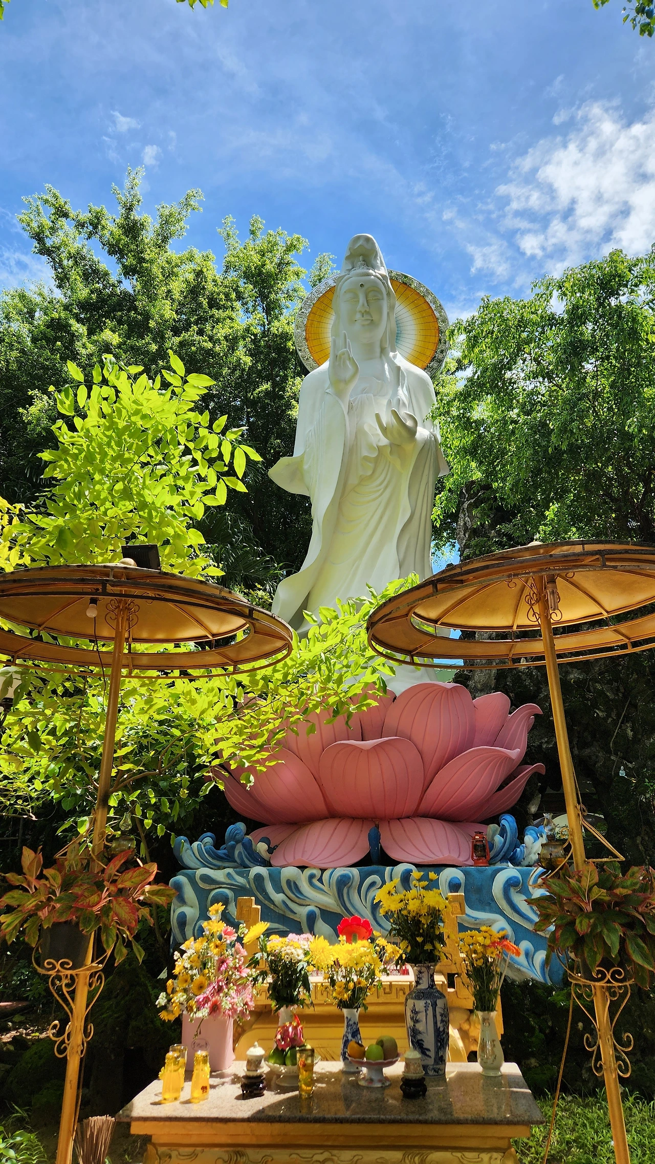 예전에 한국 소주의 상징이었던 금복주와 비슷하게 생긴 금동상이 정겹게 맞이한다. 여래보살상도 하늘과 맞닿을 듯 멋지게 서있다.