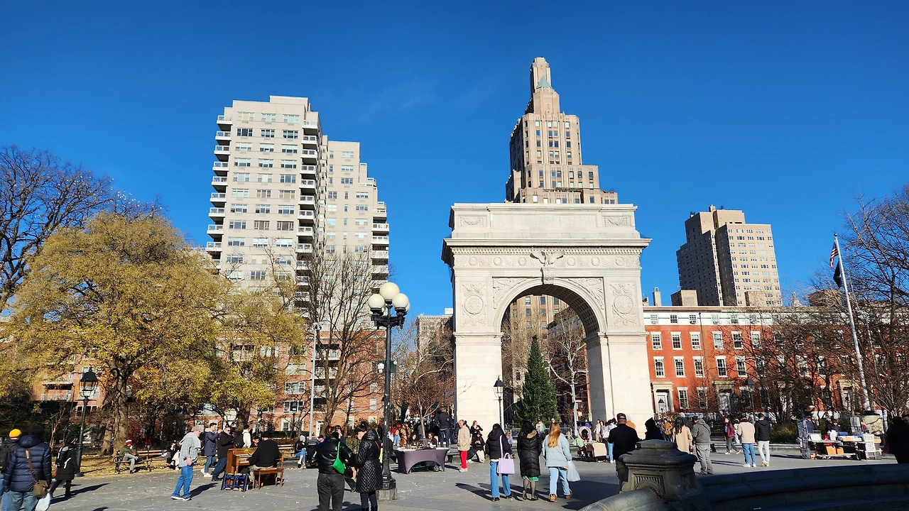 마지막 방문지인 Strand중고서점으로 가는 중간에 워싱턴 스퀘어 공원을 거쳐 가면 좋을 듯 해 경로를 바꾸었다. NYU근처라 졸업사진을 찍는 학생들도 있고 버스킹으로 피아노를 가져다 놓고 공연을 하는 사람들도 있었다. 날씨가 그리 따뜻하지 않은데도 벤치에 제법 많은 사람들이 쉬고 있었다.