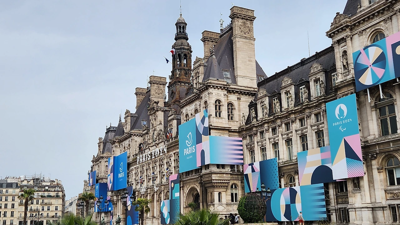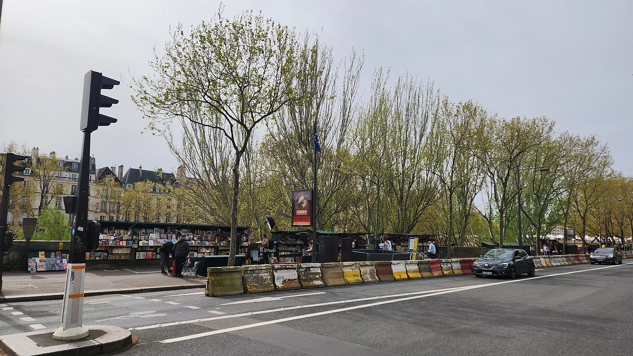 센 강의 명물인 거리중고 서점들이 늘어서 있다. 파리올림픽 기간 철거를 할 거라는 뉴스를 봤었지만 그러지 않기로 했나 보다. 오른쪽의 파리 시청에는 올림픽을 알리는 상징들로 장식되어 오가는 사람들의 시선을 잡고 사진을 찍고 가라고 한다.