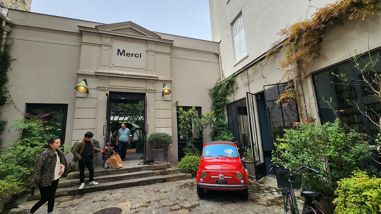 퐁피두에서 나와 요즘 유행하는 'Merci'라는 상점에 가 보자고 한다. 구글지도를 검색하니 걸어서 20여분 정도 예상된다. 마레(Le Marais) 지구 끝 편에 있는 것 같다. 주말에 날씨가 좋아서인지 거리에 사람들이 많다. 중간에 경찰차들이 한꺼번에 여러 대가 지나가면서 길이 막히기도 하였다. Merci 가게는 큰 길가에서 약간 들어가야 보인다.