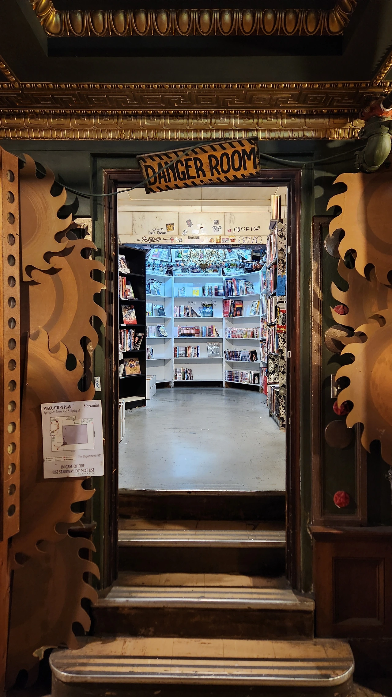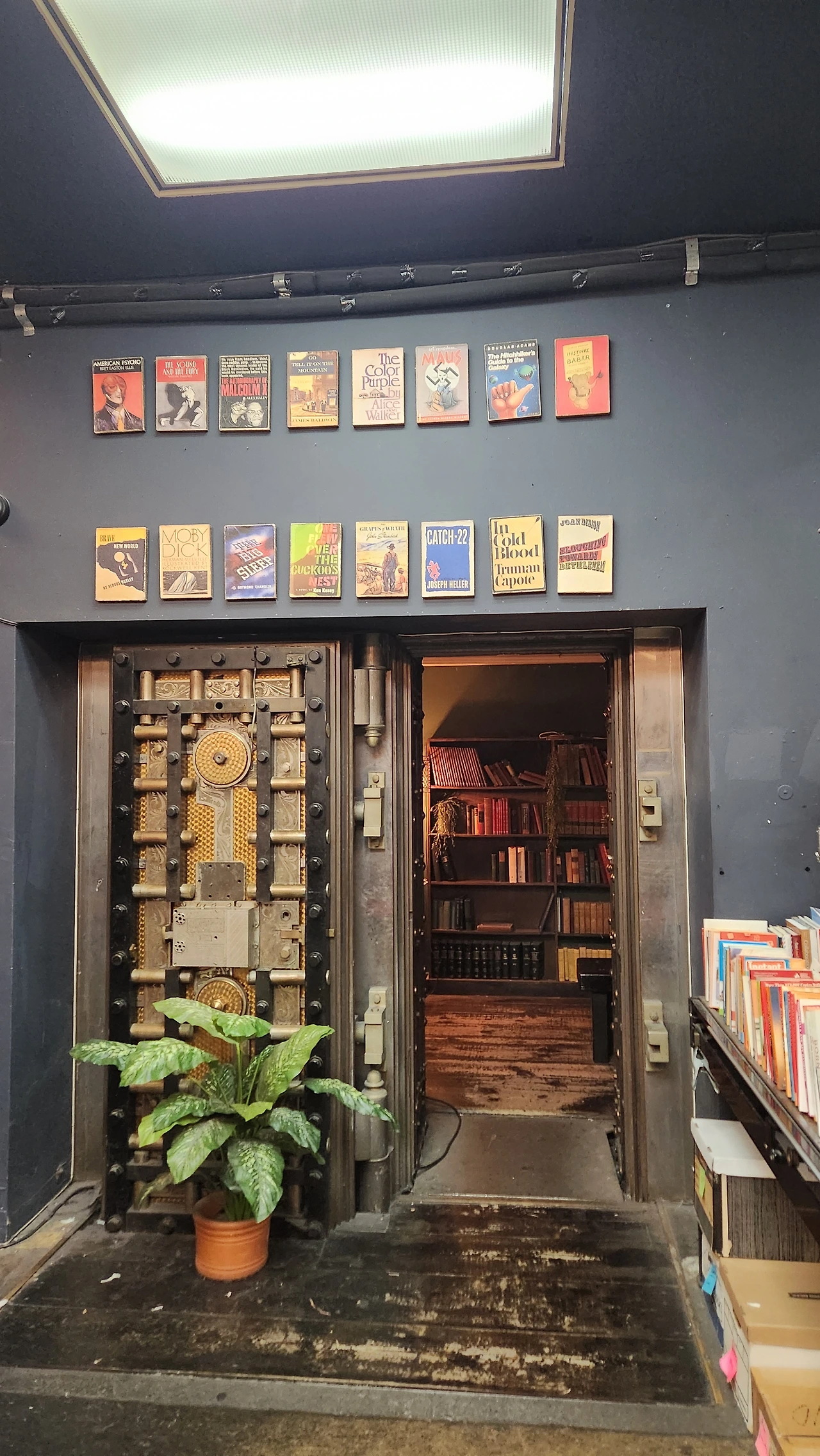 그 옆 공간에는 이상하게 생긴 문이 있었다. 마치 은행의 거대한 금고의 문같이 생겼다. 이곳이 예전에는 은행이었나 아니면 다른 곳에서 가져와 설치를 한 것인가? 궁금하긴 했지만 또다시 Help Desk의 그 점원을 괴롭히지 싫어서 궁금증을 참았다. 대신 그 문안의 방으로 들어가자 판매하지 않을 것 같은 오래된 책들로 채워져 있었다. 그것도 책장을 덤성덤성 비워 둔 채로 말이다.