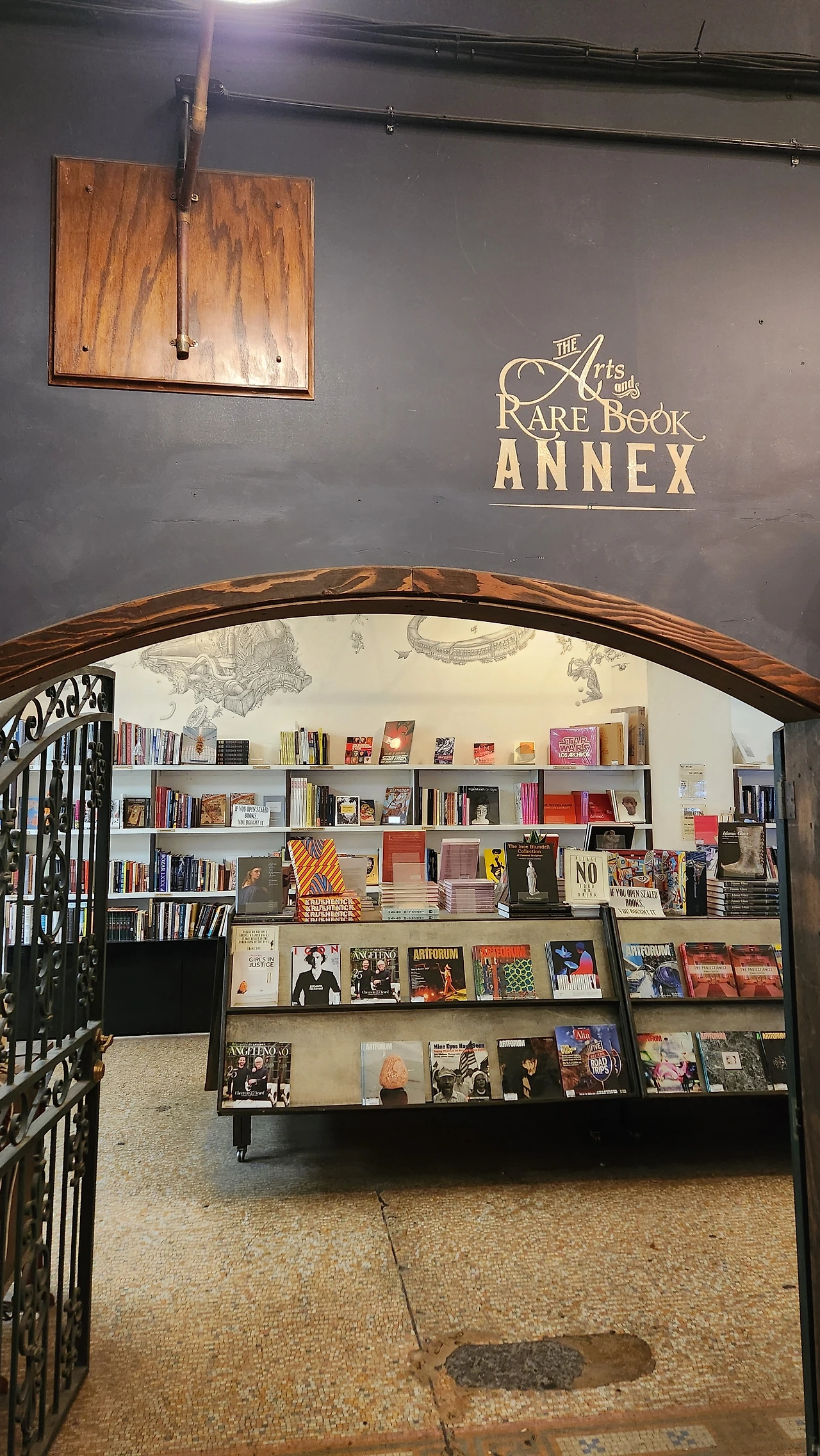그전에 왼편으로 눈을 돌리면 rare book annex 보인다. 책을 파는 곳이라기보단 전시실 같다. 희귀 책들이 유리장 안에 들어 있으며 벽면은 미술관의 어느 방 같이 사진과 그림들의 액자로 채워져 있다. 책들은 처음 보는 책들이 대부분이었다.