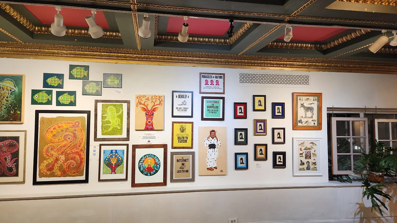 2층으로 올라가니 커피를 판매하면서 화랑에 온 듯이 벽면을 다양한 그림으로 채워 두었다.