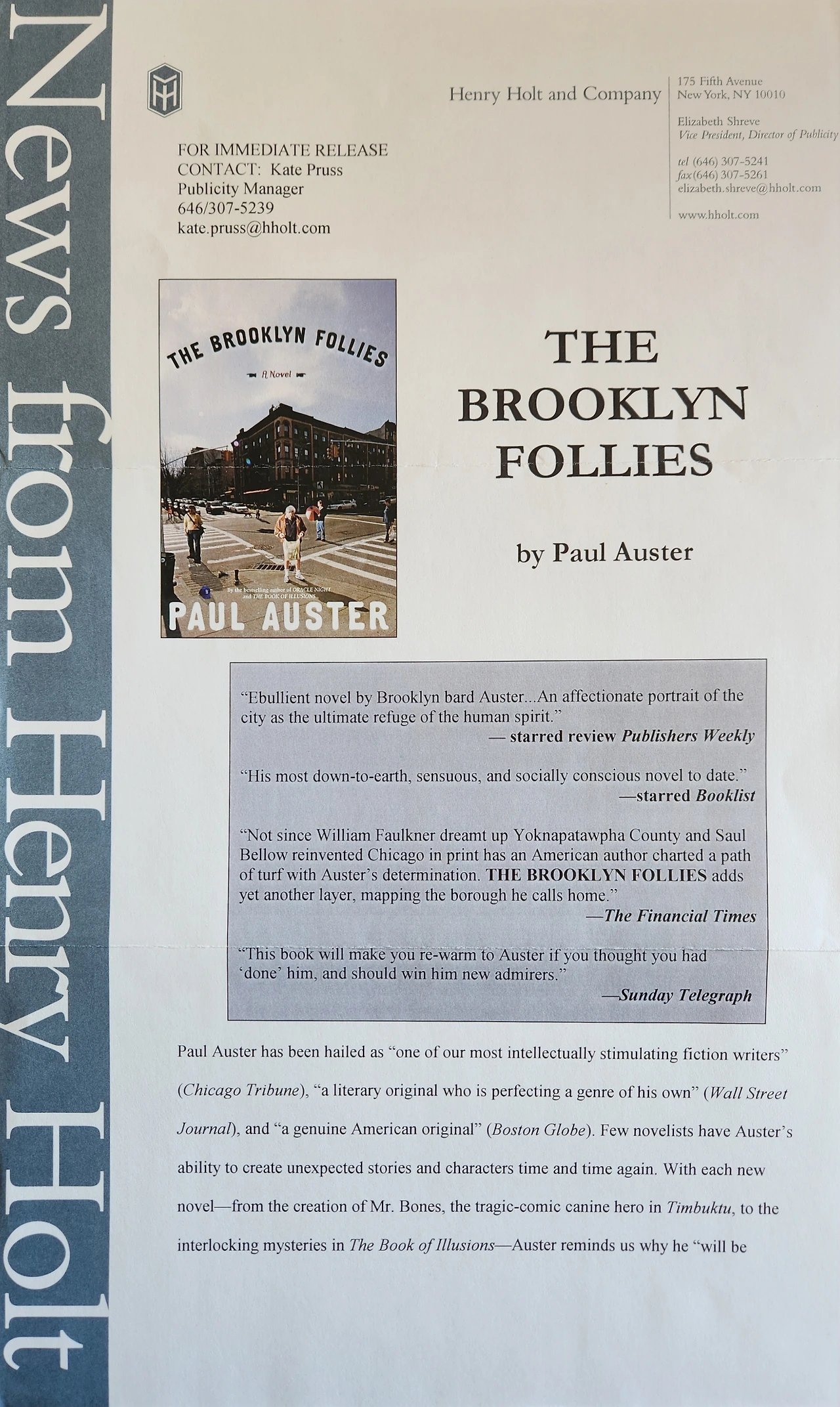 아직 구매하고 읽지 않은 그의 작품 몇 권이 남았지만 Paul Auster의 신간은 더 이상 없지 않을까 한다. 2024년에 영면하셨다. 차분히 남은 작품들을 읽어나갈까 한다. R.I.P.