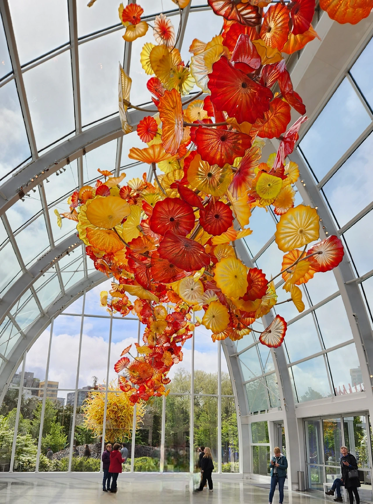 이곳은 시애틀의 상징인 Space Needle 바로 옆에 있어 찾기는 쉽다. Chihuly Garden과 함께 입장료를 연동해서 판매도 하니 스페이스 니들에 올라가고 싶으면 한 묶음으로 구매하는 것도 추천한다. 하지만 이번은 Chihuly만볼 보기로 했다. Dale Chihuly는 이곳 워싱턴주 출신으로 유리공예를 예술작품으로 바꾼 독보적인 작가이다. Las Vegas의 Bellagio Hotel 로비의 유리천장도 Chihuly의 작품이라고 한다.