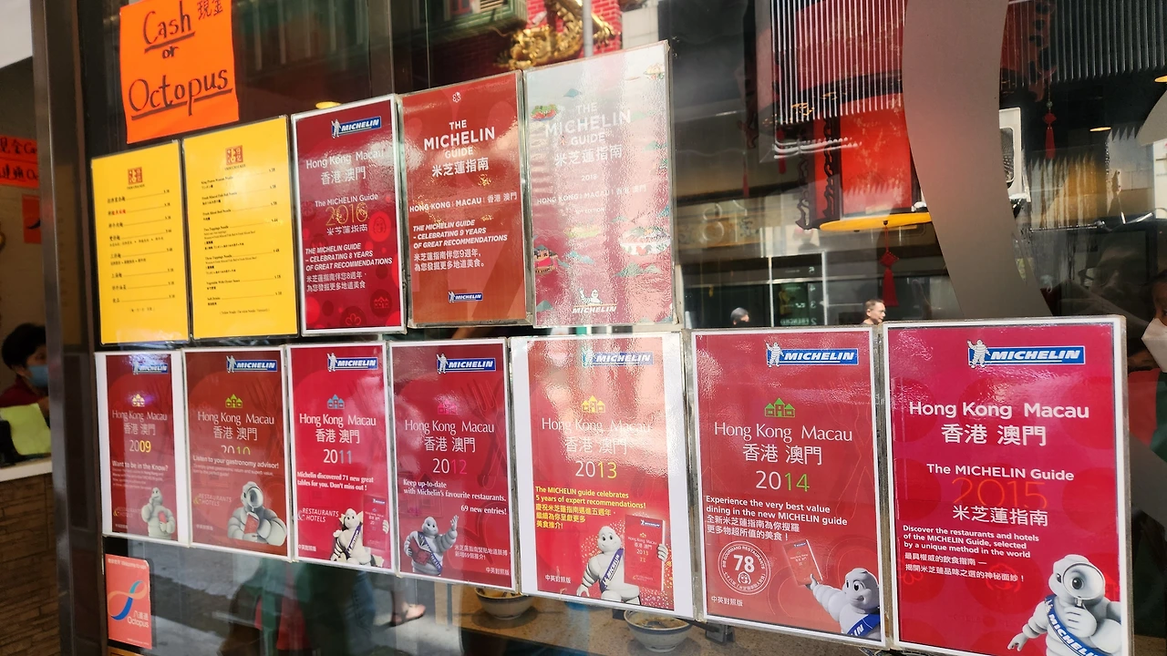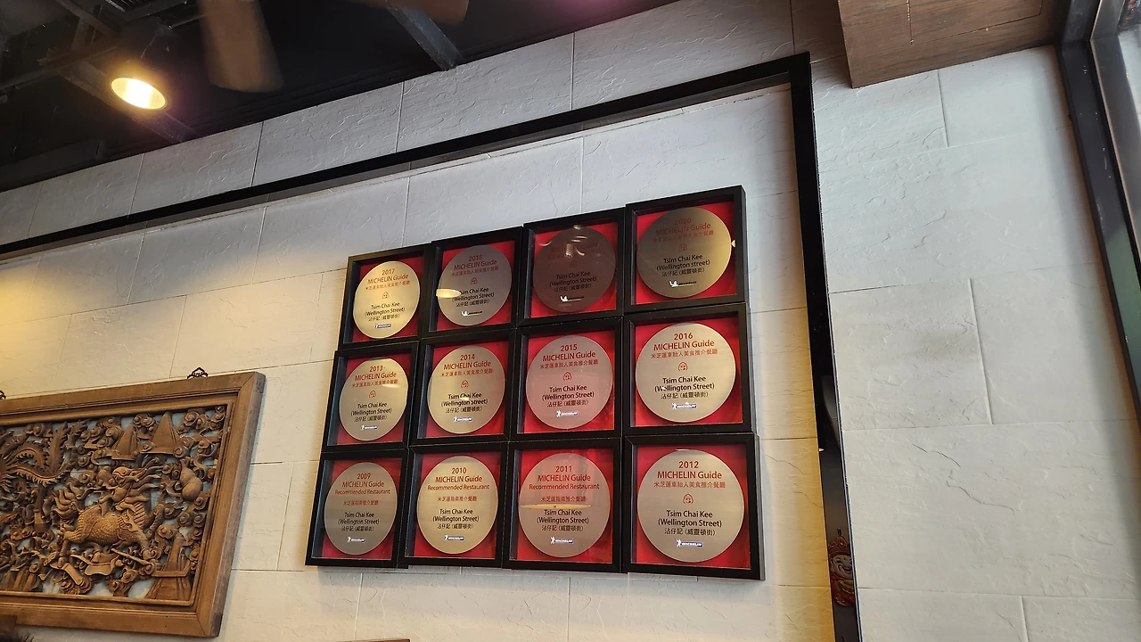금방 앞집에서 완탕면 바닥까지 보이면서 먹었던 나인가? 다시 먹어도 맛있다. 아니 앞집보다 이곳이 더 맛있다. 면도 그렇지만 완탕이 더욱 크고 새우가 야무지게 들어가 있어 식감이 더욱 풍부했다. 심지어 가격도 앞집보다 더 싸다. 미슐렝을 10여 년째 받아오면 이유가 아니 계속 줄을 서면서 먹는 이유가 있지 않겠나! 입구옆 창문과 벽면은 미슐랭 인증으로 채우고 있다. 이번에도 국물 남기지 않고 다 먹었다. 내가 완탕면 이렇게 좋아했나?