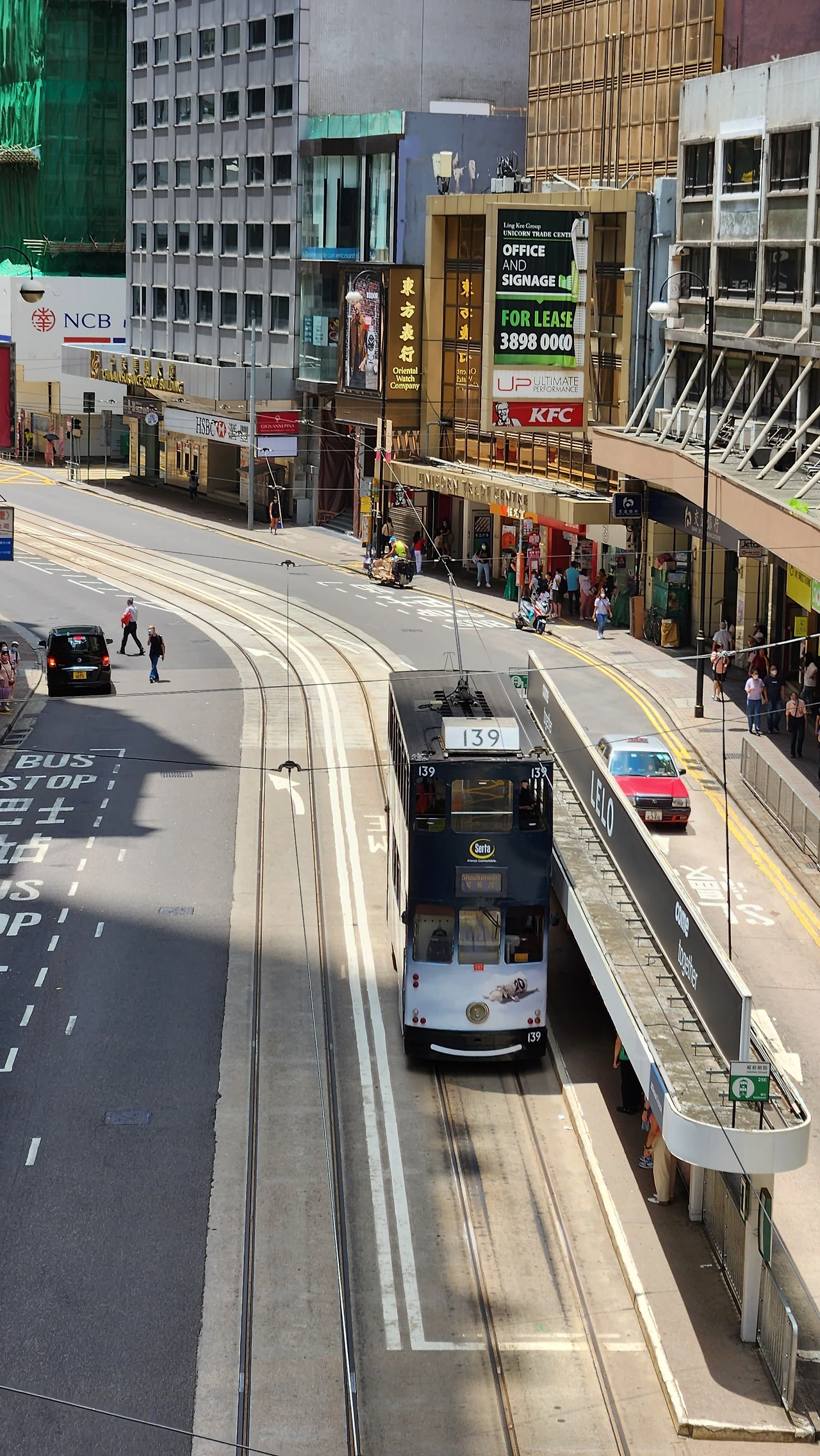 거리는 얼마 되지 않지만 생각보다 파도가 있어 배가 좌우로 살짝씩 흔들린다. 건너편에서 보는 건물들 풍경이랑 배 위에서 보는 건물들 풍경이 사뭇 달리 보인다. 홍콩의 건물들은 얼마나 더 지을 수 있을까? 이런 상념에 잠기다 보면 금방 도착이다. 인파에 휩쓸려 내리다 보면 방향을 잃기 마련이다. 오늘의 목적지는 MIDDLE LEVEL초입의 완탕면을 먹으러 가는 거다. 일단 구름다리를 이용해 IFC빌딩 방향으로 가면 된다. 멀리 보니는 Apple Shop을 방향키로 설정하면 쉽다. 밖은 습하고 덥지만 구름다리 아래로 트램 지나가는 것을 내려다보면 '아! 이게 홍콩이지'라고 느끼게 된다.