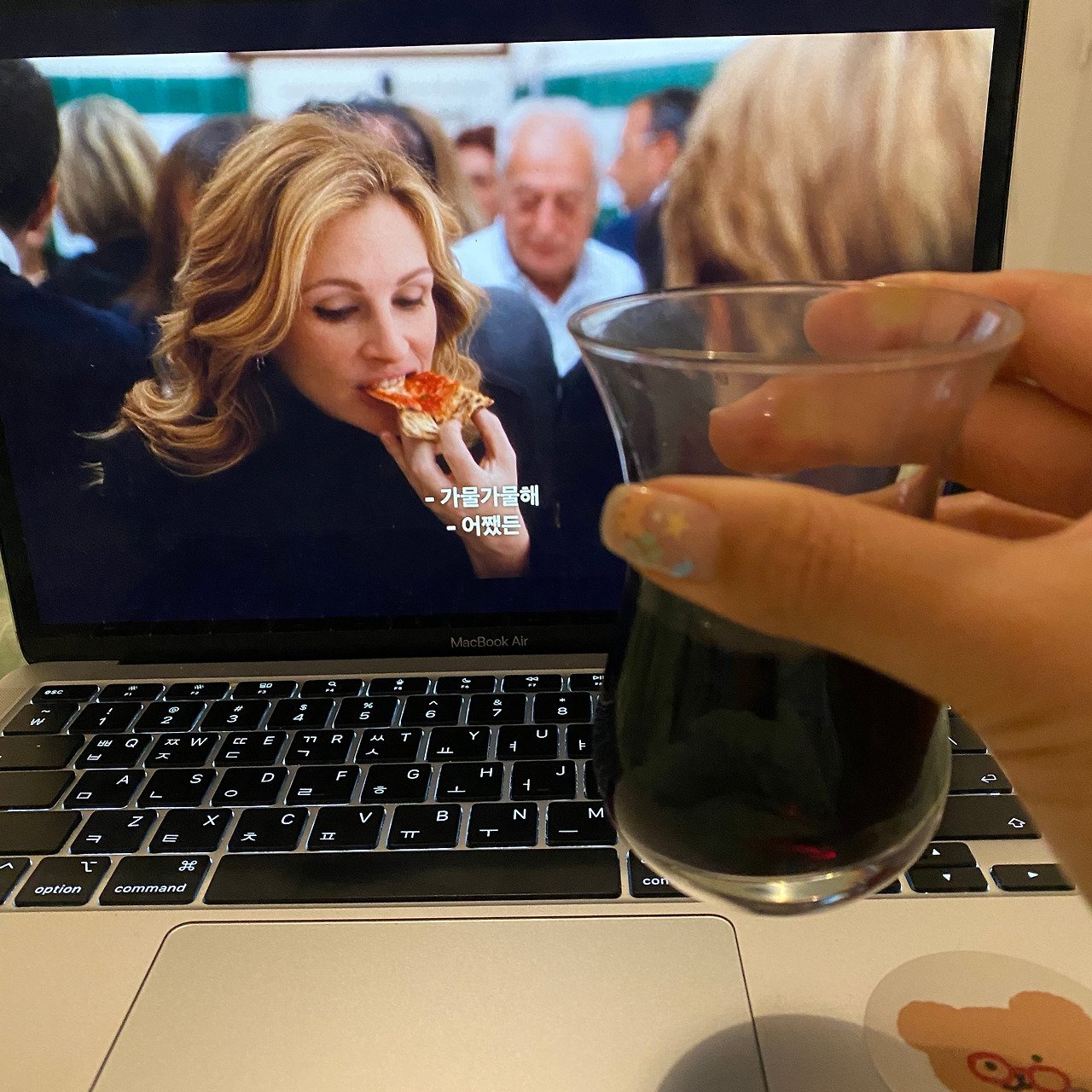 자연스레 아침부터 공복에 피자와 와인과 함께 내가 좋아하는 영화인 'eat play love'를 본다.