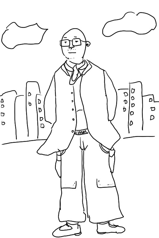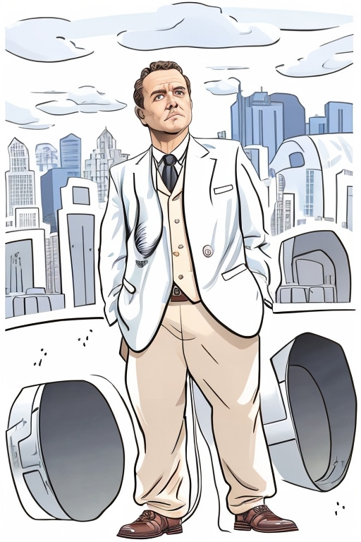 그리고 프롬프트에 "대머리의 잘생긴 중년 남자가 도시를 배경으로 서 있다"라고 썼다.