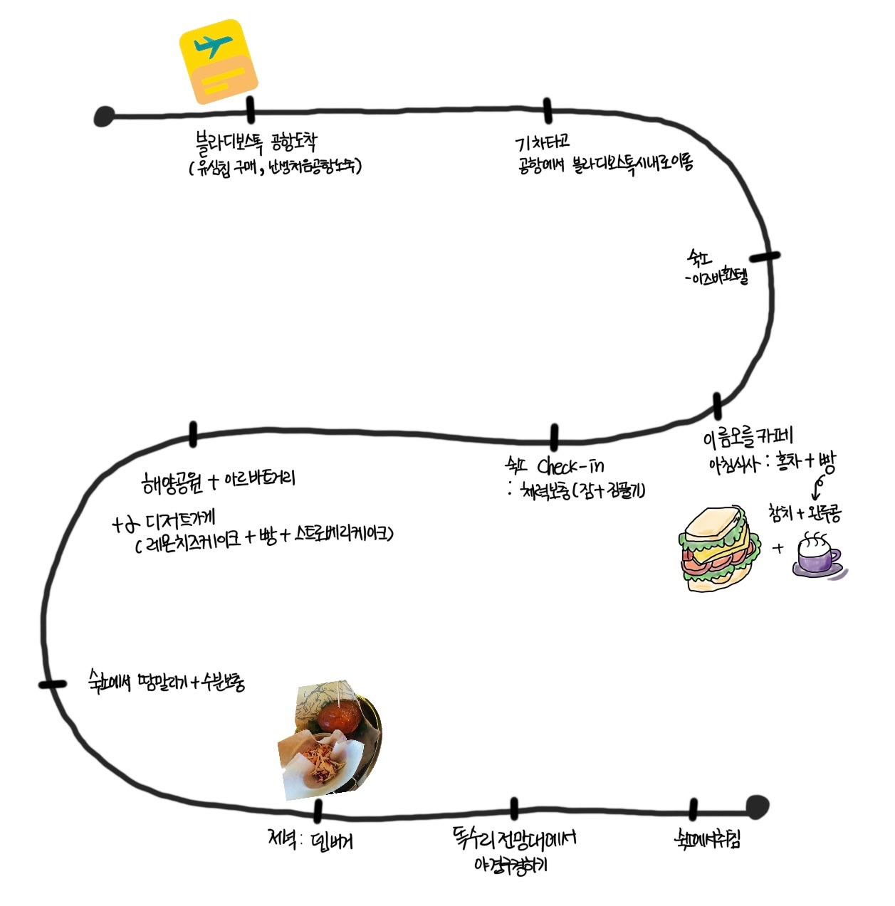 그렇게 숙소에 도착해 체크인을 하고 유명관광지인 해양공원과 아르바트거리를 구경했다. 삼시세끼 잘 챙겨 먹고 디저트 두 개씩 아주 야무지게 먹으며 말이다. 너무나도 완벽했다. 이제 나의 일정은 블라디보스토크의 하이라이트 독수리 전망대에서 야경구경만이 남아있었다.