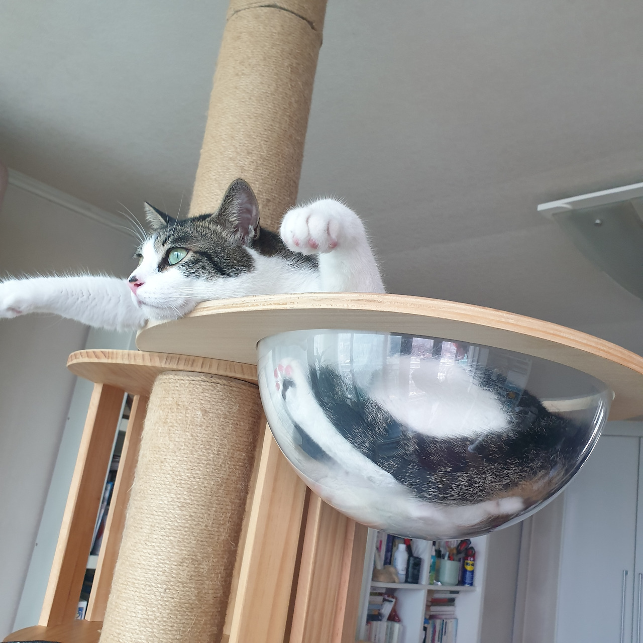 캣폴에 앉아 하염없이 내다보고 있는데, 그냥 창밖을 구경만 하고 있는 걸까?