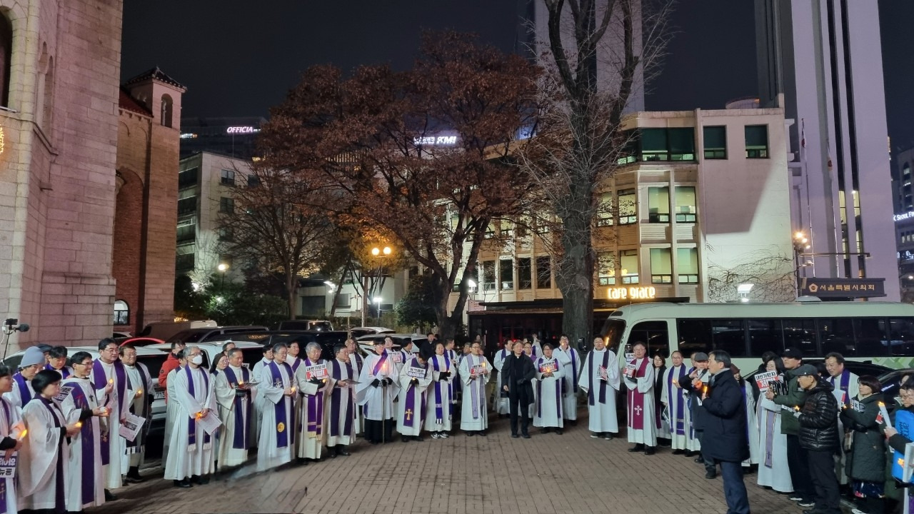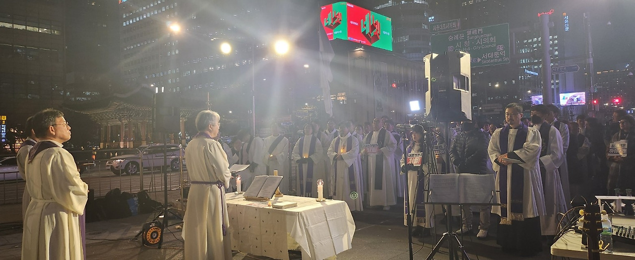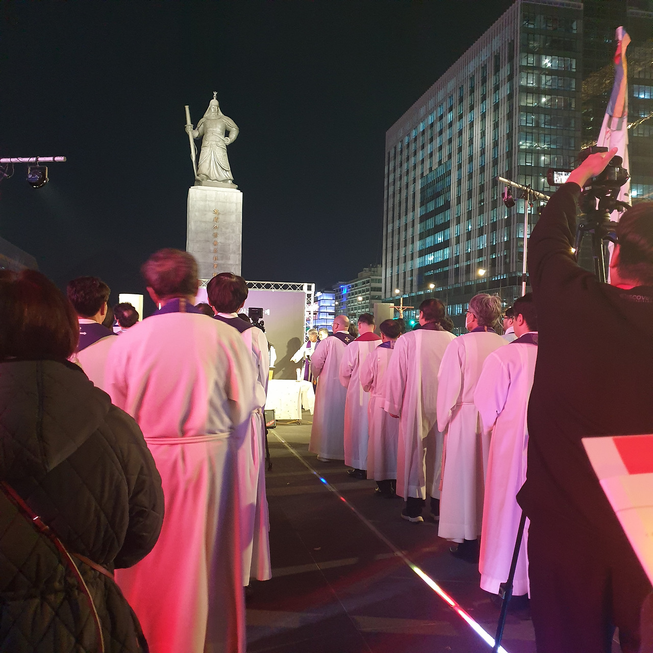 대한 성공회 비상시국 성찬례가 이순신 동상 앞에서 있었다,