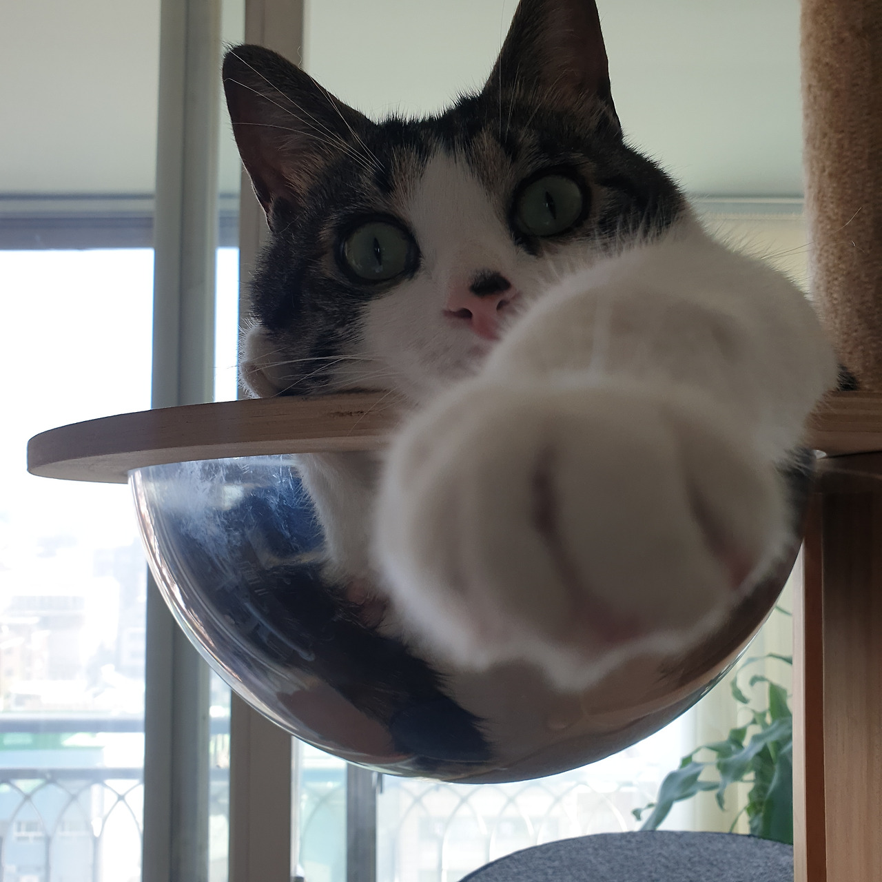 어머니 말에 의하면 어떻게 엘리베이터 소리를 들었는지 진작에 캣폴에서 뛰어내려와서 기다리고 있는 중이라고 하셨다.