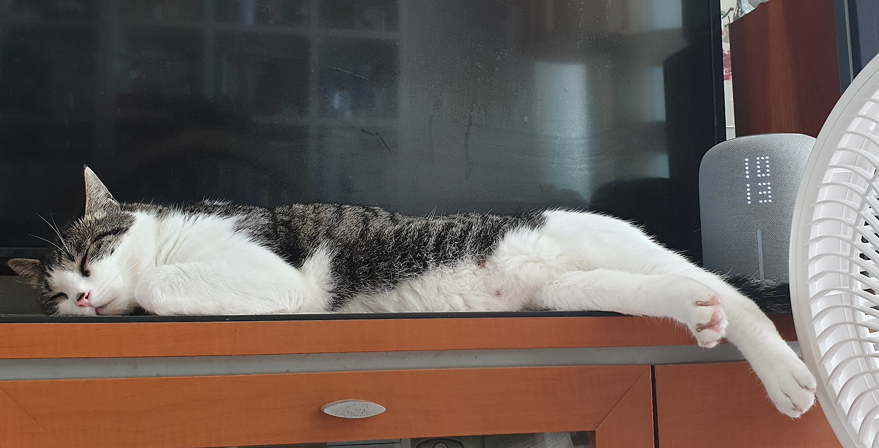 꼼짝도 안 하는 고양이를