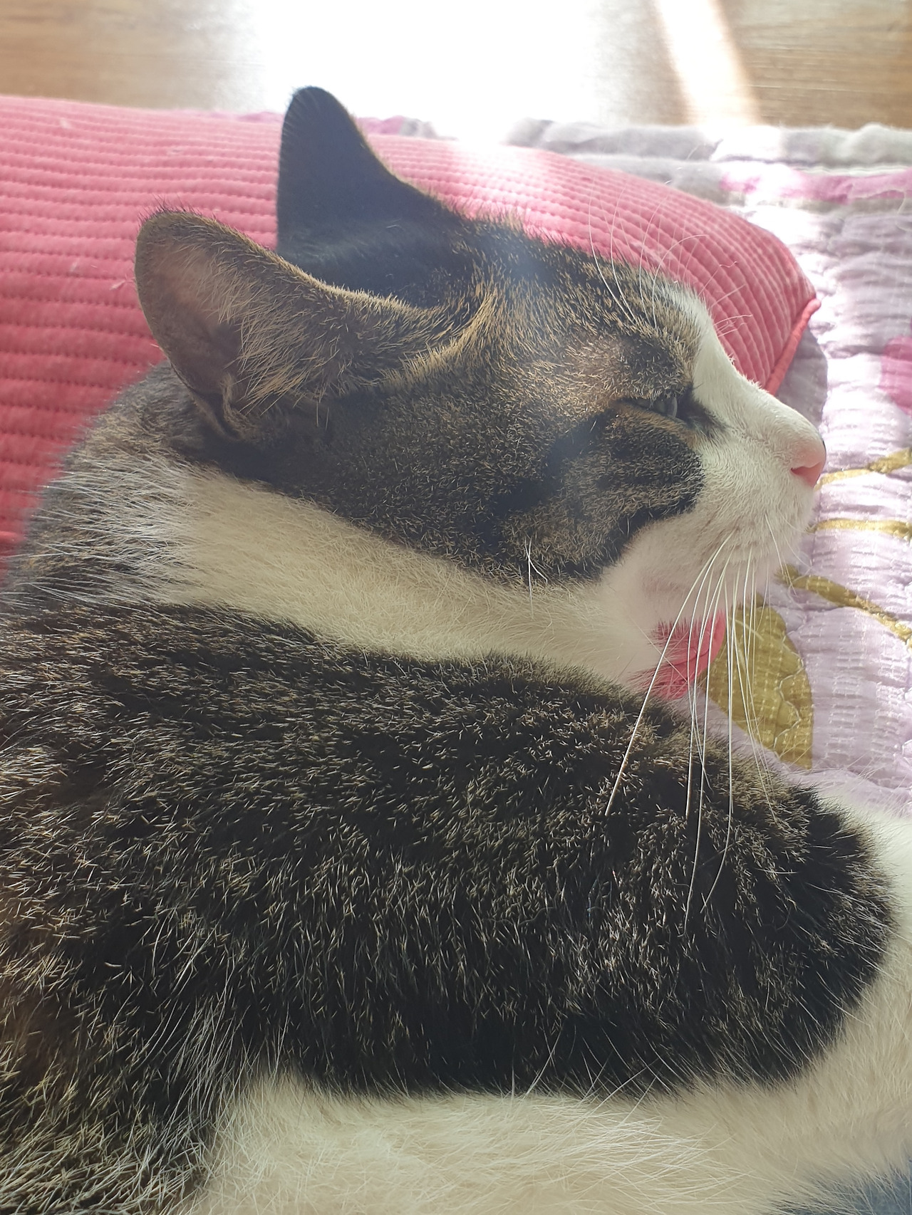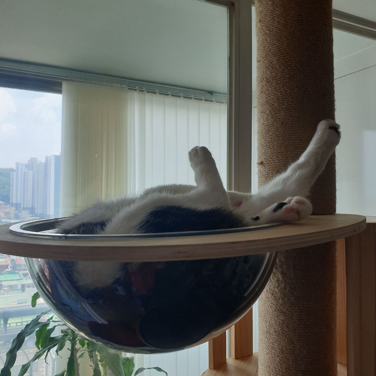 하고 사랑을 담아 불러줘도 캣폴에 머리를 박고 누워서 미동도 하지 않는다.
