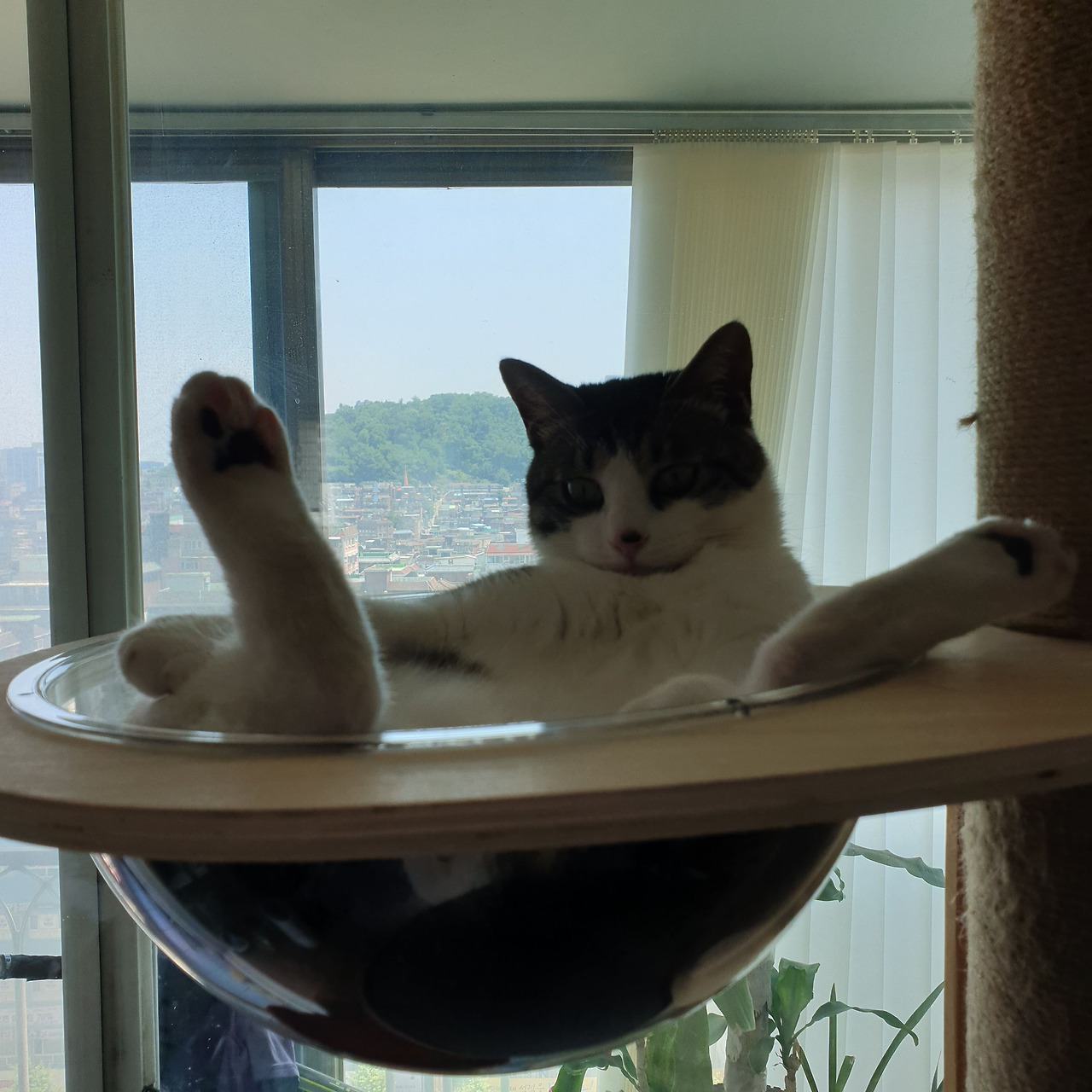 들리지도 않는 엘리베이터 멈춤 소리는 어떻게 들었는지 귀를 쫑긋 세우다 삑삑삑 번호키 소리가 나면 쿵 소리가 나도록 후다닥 캣폴에서 뛰어 내려와 현관문 앞에서 격하게 냐~옹댄다.