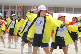아이들이 다닌 소학교 홈페이지 사진 인용 (요사코이 공연 중인 학생들)