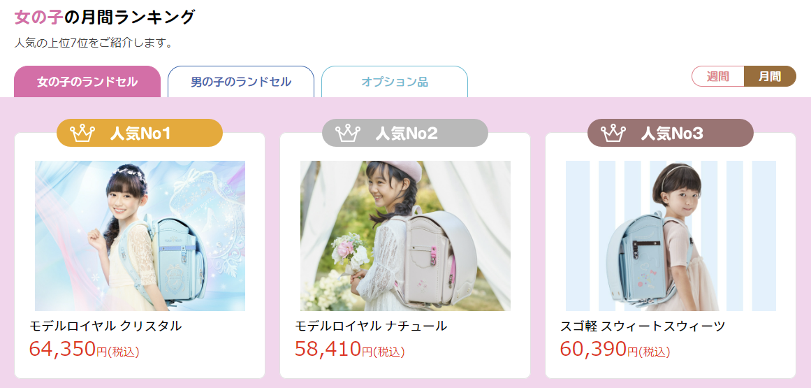 란도세루 판매 사이트 캡처 (여학생 란도세루 월간 인기 순위)
