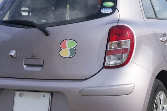 ‘마크’의 뒷면에 자석 성분이 있어서 차에 쉽게 붙일 수 있고, 100엔 샵 등에서 살 수 있다.