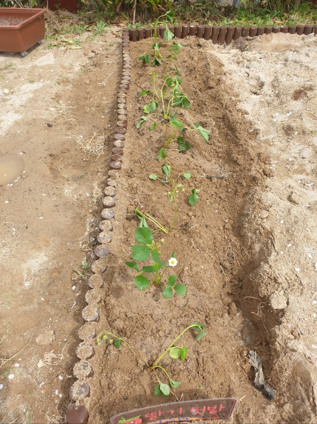 그리고 정원 텃밭에 딸기 모종을 심었습니다.