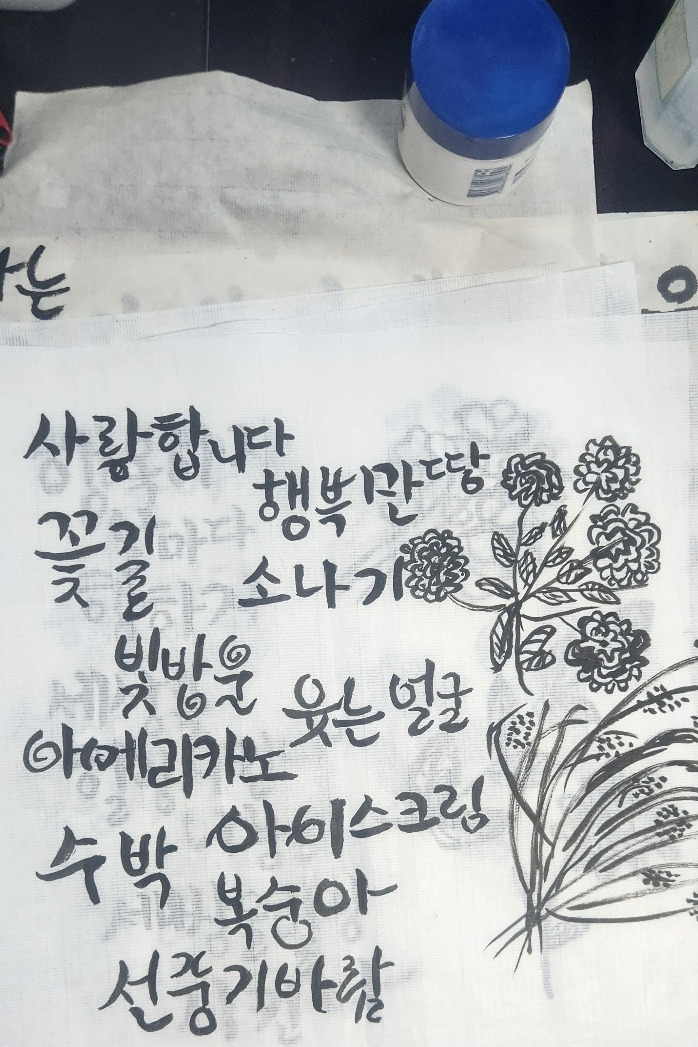 얼마 전부터 떨리는 손으로 캘리그래피를 시작했다.