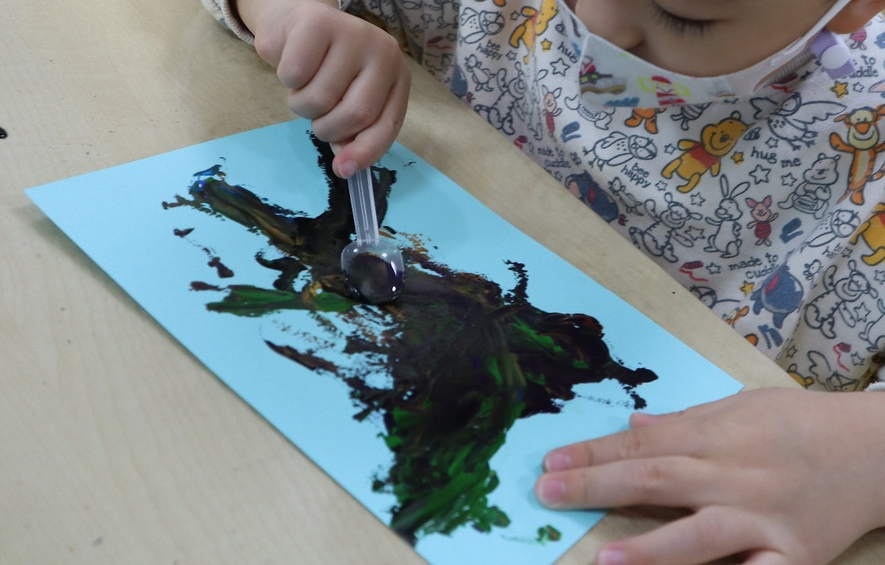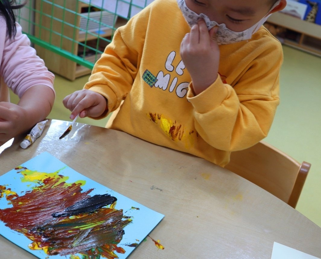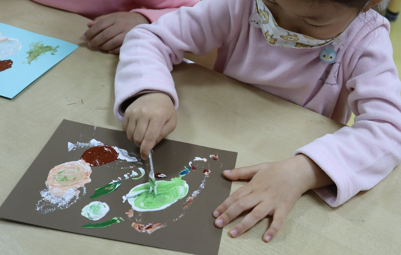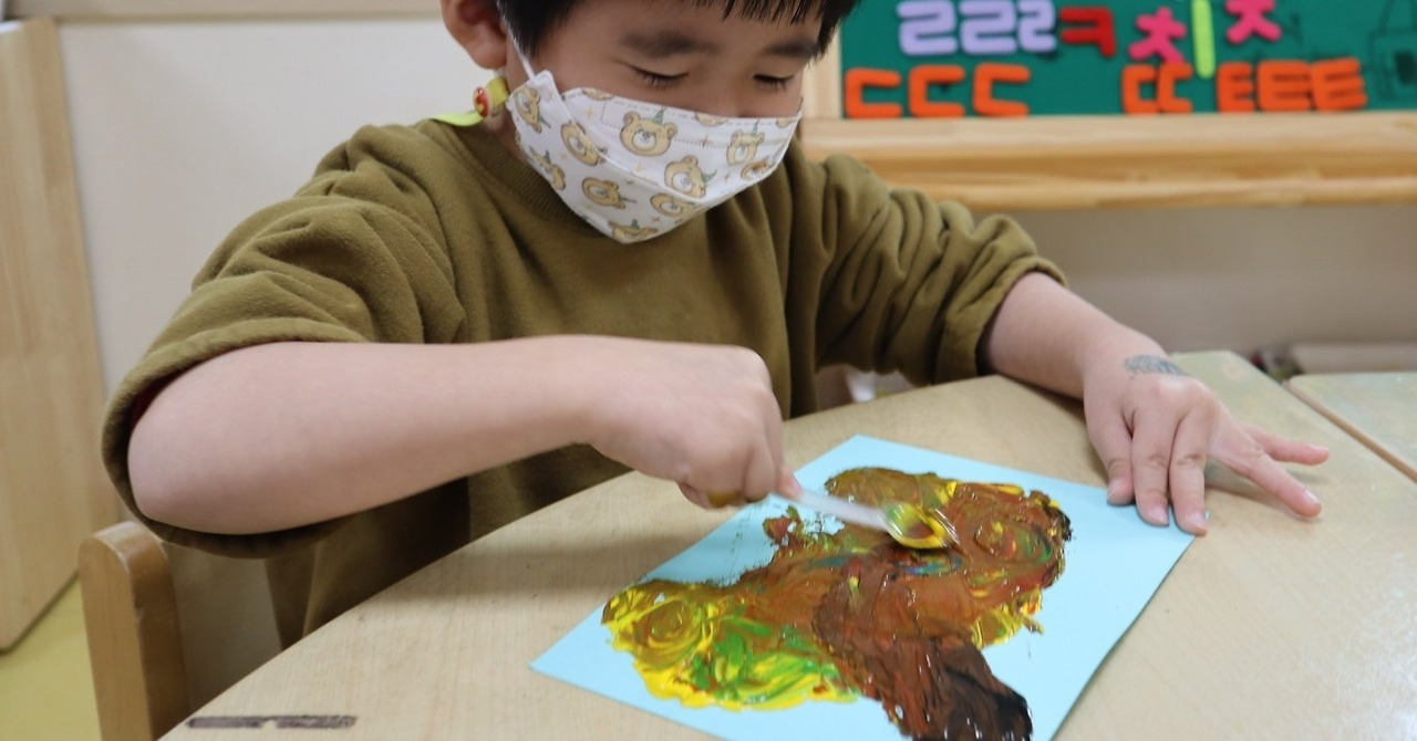 물감을 스스로 짜서 섞어보며 표현해 보는 놀이로 지원하였습니다.