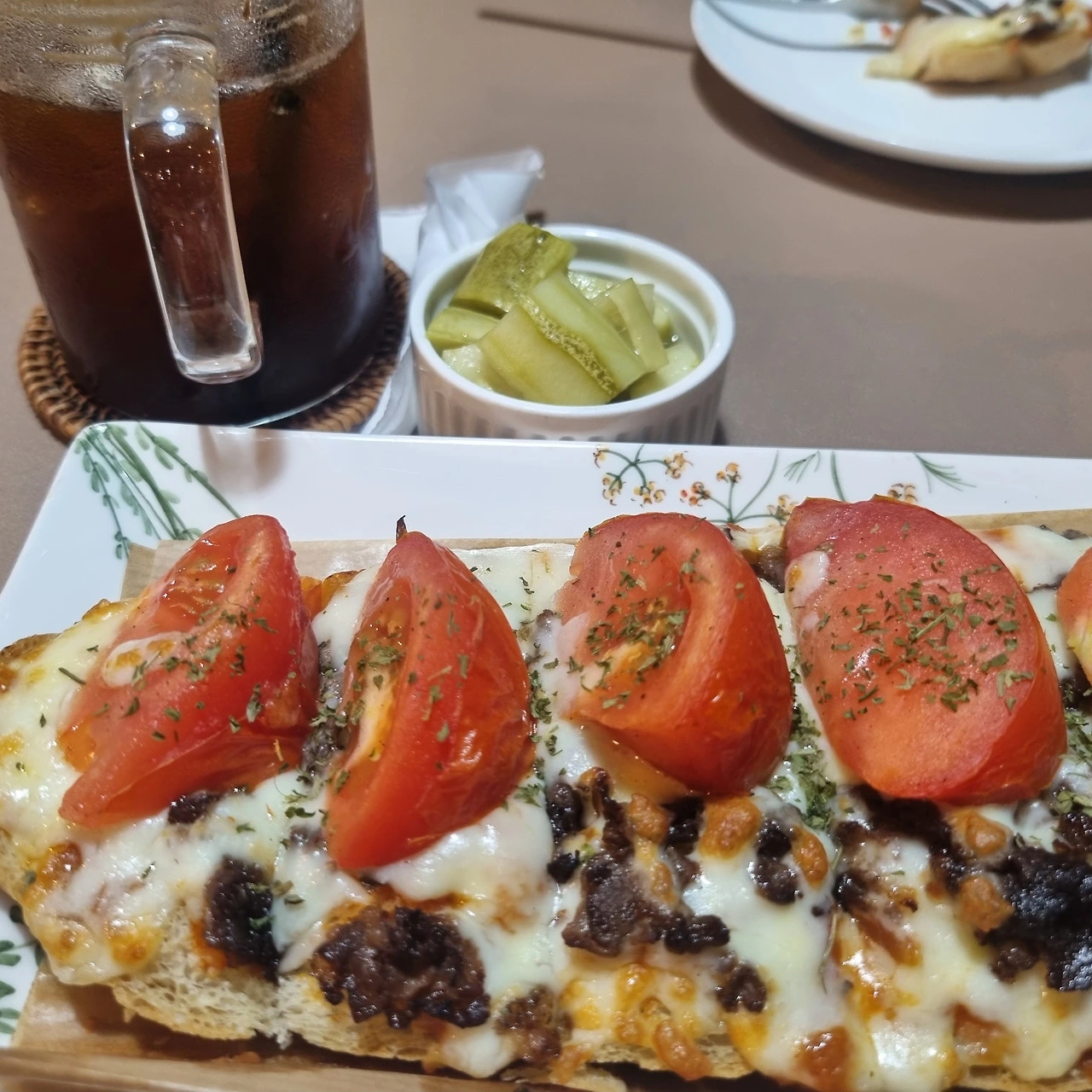 피자는 신선한 토마토를 살짝 구워 올린 한우토마토 바게트피자