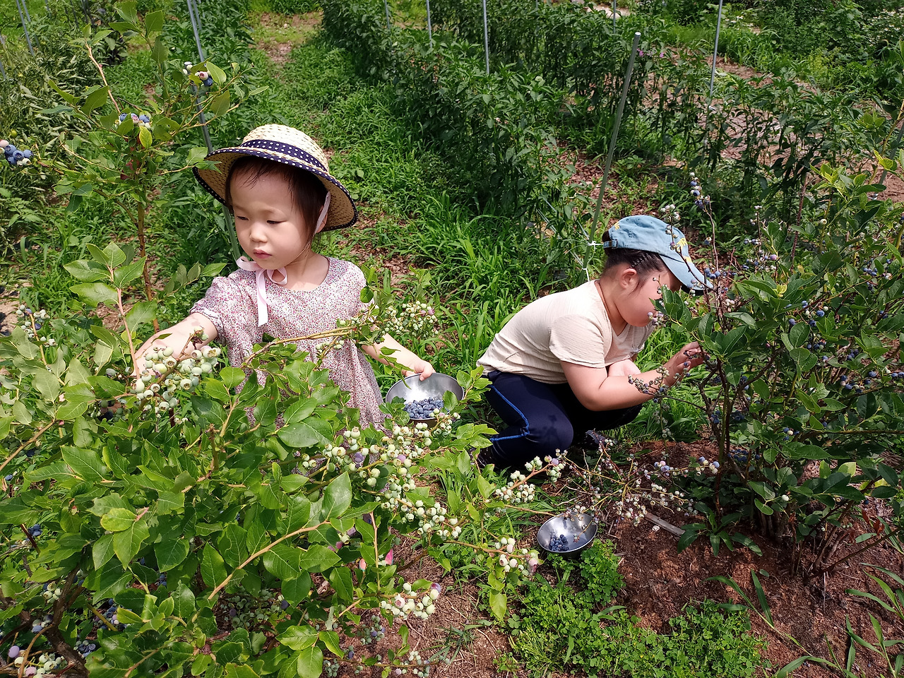 밭이 시작되는 곳에는 블루베리와 딸기를 심었습니다. 아이들이 언제든지 밭을 바라보며 열매를 따 먹을 수 있도록 한 것입니다. 앵두나무, 매실나무, 살구나무, 체리나무도 심었습니다. 시원한 날씨를 좋아하는 열무며 총각무, 당근과 완두콩 씨를 먼저 땅에 넣어두고, 감자를 심습니다. 감자 싹 사이사이에는 키가 큰 옥수수를 심어 재미를 줍니다. 조금 뜨거운 날씨를 좋아하는 맷돌호박, 단호박, 애호박, 토마토, 가지, 고추와 고구마를 심습니다. 이제 모종판에서 자라고 있는 땅콩, 아주까리밤콩, 해바라기를 옮겨 심어야 합니다. 대추나무 사이에 심어 함께 키울 계획입니다. 여름을 즐기는 들깨에 서리태까지 심으면 밭의 흙색은 초록색으로 가득 채워집니다.