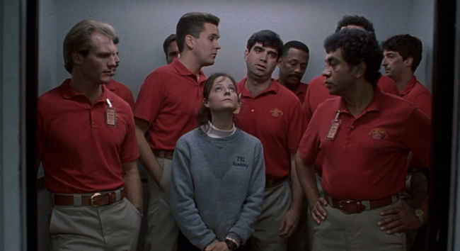 한편, 영화는 여성을 성적 대상화하는 남성의 시선을 일부 비판하고 클라리스가 이러한 시선을 극복하도록 설정한다. 영화는 카메라가 자신의 신체적 한계를 극복하기 위해 운동하고 있는 클라리스를 따라감으로써 시작된다. 카메라는 엘리베이터 안에서 수많은 남자 중 혼자 여자인 클라리스에 주목하고 장례식에서 모두 남성인 경관들을 로우앵글로 찍음으로써 홀로 여성인 클라리스에 대한 이들의 위압감을 나타낸다. 또한, 조깅하는 클라리스의 뒷모습을 훔쳐보는 남성들을 보여준다. 여성을 성적 대상화하는 남성의 시선은 대사에서도 확인할 수 있다. 칠턴 박사는 클라리스와의 첫 만남에서 매력적이라고 말하면서 같이 하룻밤 보내자고 유혹한다. 또한, 한니발 렉터(Hannibal Lecter)에게 미인계를 쓰는 것을 보니 크로포드 박사(Jack Crawford)가 똑똑하다고 말한다. 클라리스가 수사를 위해 곤충 박사들을 만난 장면에서도 이들 중 한명이 클라리스에게 수작을 건다. 이처럼 클라리스는 지속적으로 완전한 개인이 아닌 남성의 성적 대상으로 인지된다. 이러한 폭력적인 인식에 대해 영화는 비판한다. 클라리스는 자신을 업무적 대화에서 소외시킨 크로포드 박사가 그 이유를 설명하자 다른 경관들에게 본보기가 될 수 있기 때문에 그러한 차별은 올바르지 않다고 비판한다. 영화는 여성을 소외시키고 오로지 성적 대상으로만 인지하는 남성적 시선의 문제점을 지각하고 있는 것이다.