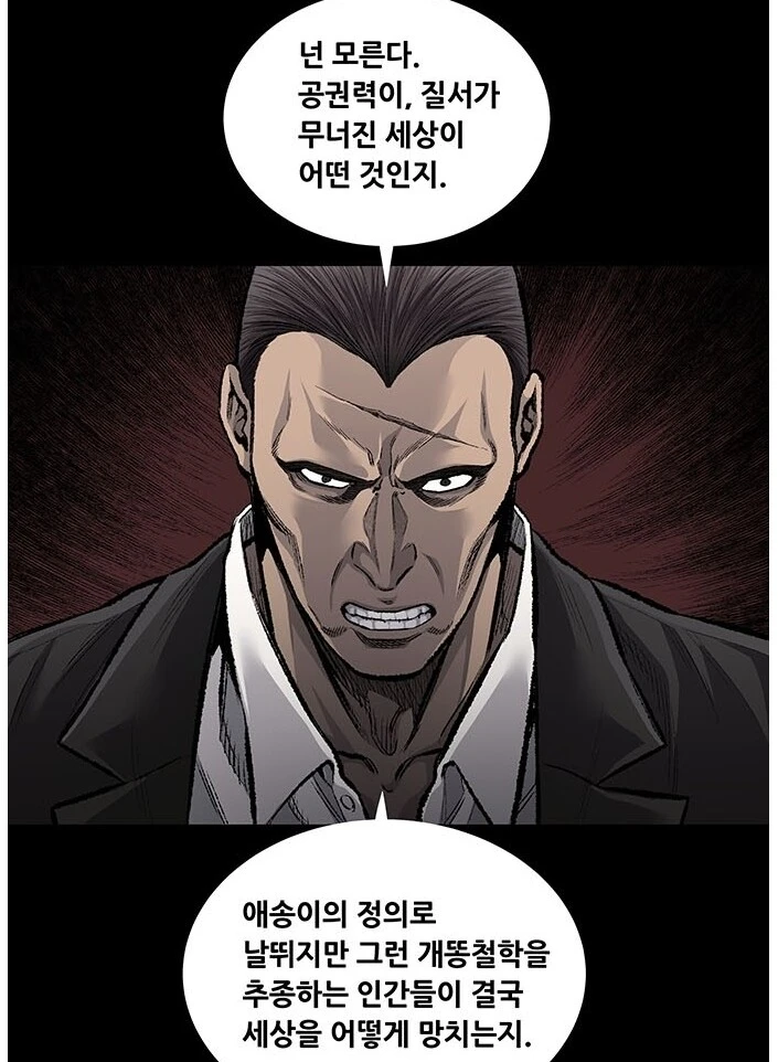 최근에 방영을 시작한 드라마 비질란테를 보기 위해, 나는 예전 기억을 살리고자 웹툰 비질란테를 다시 정주행 했다. 과연 액션이면 액션, 스토리면 스토리, 다시 봐도 몰입하게 되는 훌륭한 만화였다. 비질란테의 스토리는 CRG, 작화는 김규삼이 담당했는데, 웹툰을 꽤나 좋아하고 또 많이 봐온 사람으로서 김규삼 작가의 가장 큰 장점을 꼽자면 그것은 '대사'다. 물론 이 작품은 스토리 작가가 CRG이기에 그가 쓴 대사이겠지만,여하튼 김규삼 작가의 작품들은 하나같이 대사들이 굉장히 설득력 있고 그를 뒷받침하는 어휘력도 상당하다. 이를 대표적으로 알 수 있는 작품이 [입시명문 사립 정글고등학교]다. 대사력 투 탑인 이사장과 불사조의 입담을 읽고 있자면, 김규삼 작가가 글을 얼마나 많이 읽고 써본 사람인지 짐작이 간다.