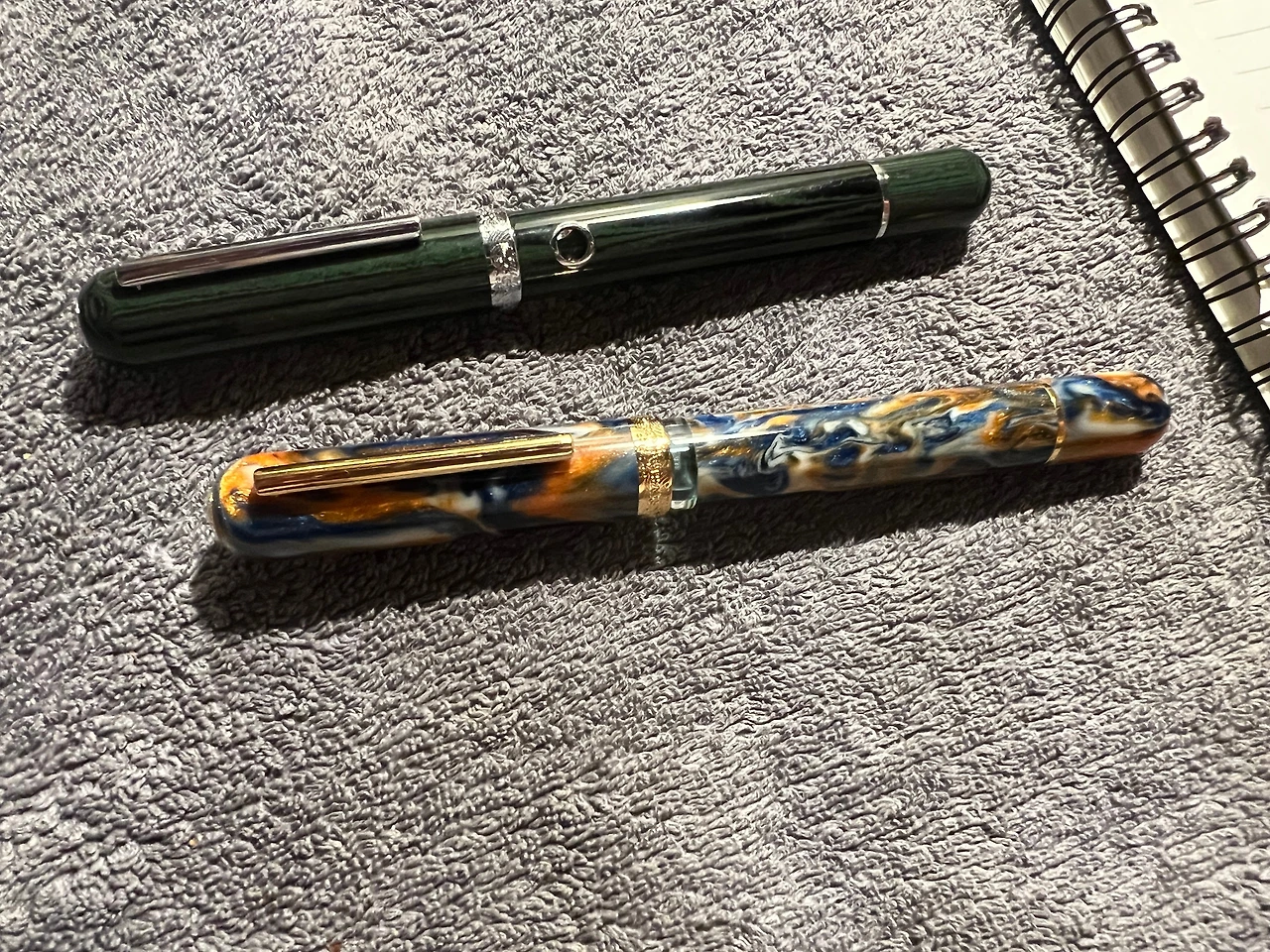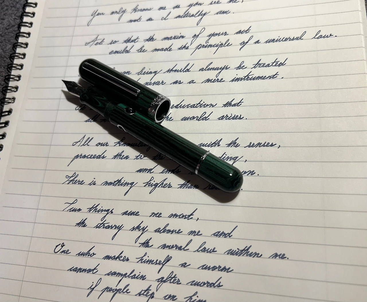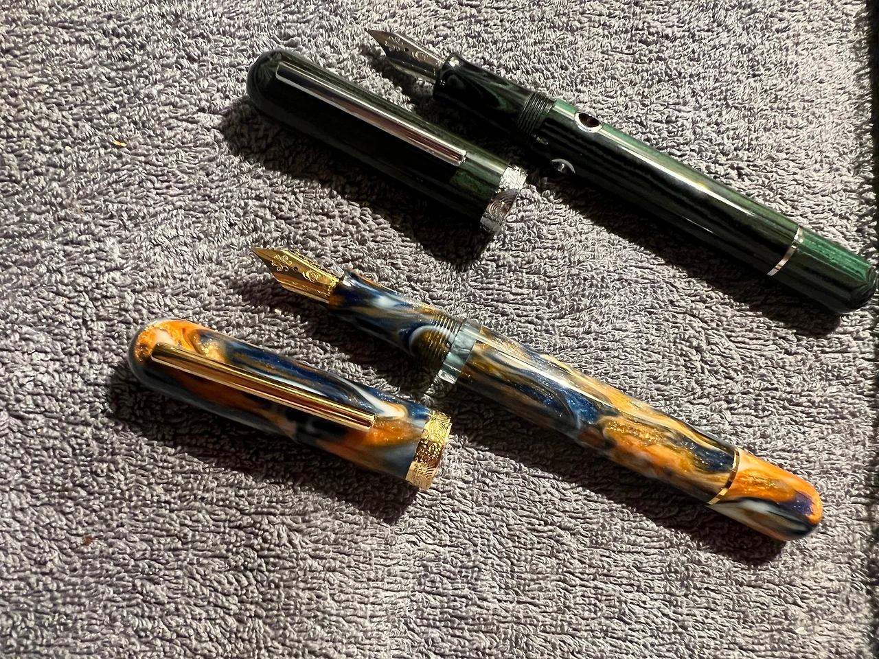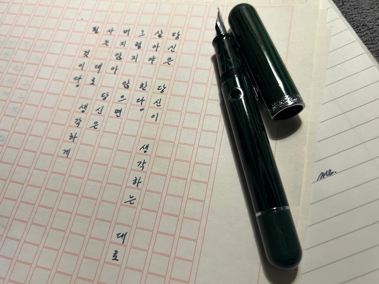 가성비 좋은 만년필, 실사용에 최적화된 만년필이라는 평에 혹하여 홀린 듯 구매했던 뉴욕 한정판 만년필. 헤리티지를 고려하지 않는다면, 잘 만든 스틸닙 하나 열 금닙 부럽지 않다는 것을 느끼게 해 준 부드러운 필기감이 마음에 들어 첼로니아 그린까지 구매했다. 잉크가 얼마나 남았는지 보여주는 동그란 창이 독특하여 마음에 들었던 첼로니아 그린 모델.
