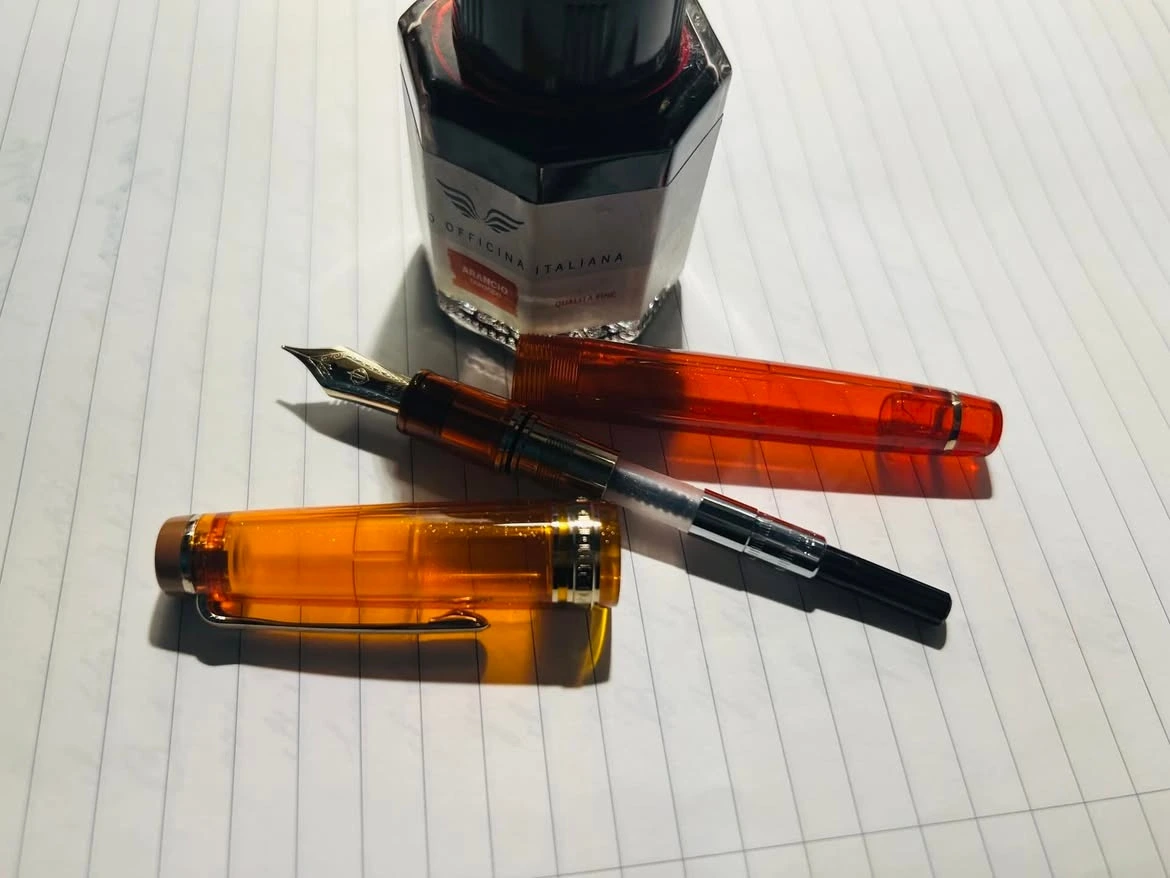 속이 보이는 데몬스트레이트(데몬) 만년필은 취향에 맞지 않아 한 자루도 들이지 않았는데, ‘크리스마스’에 꽂혀 구매. 1700 자루 생산한 모델을 한정판이라 부르는 것이 애매하지만, 여하튼 한정판인 것도 마음에 들었다.