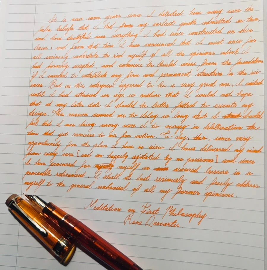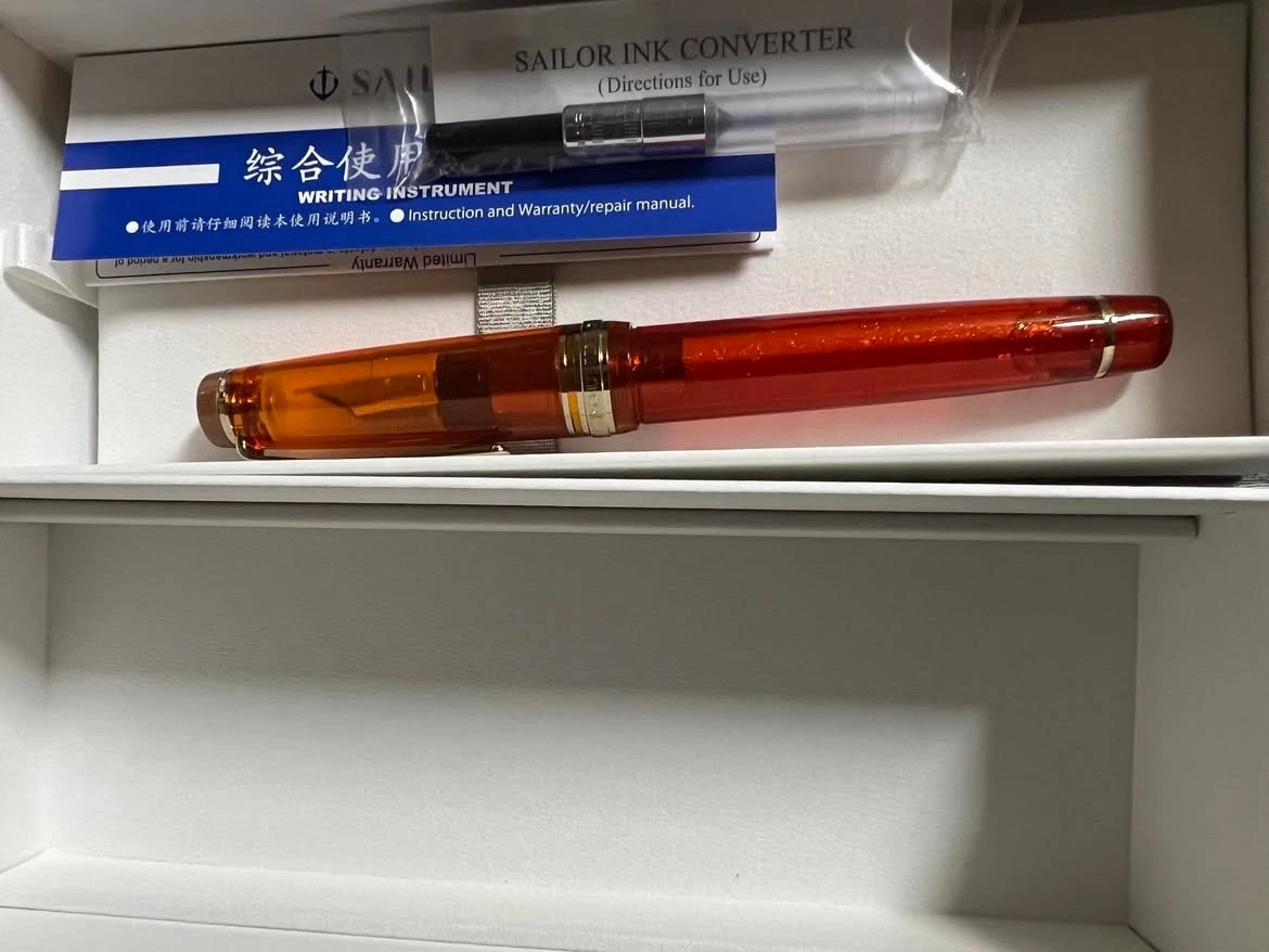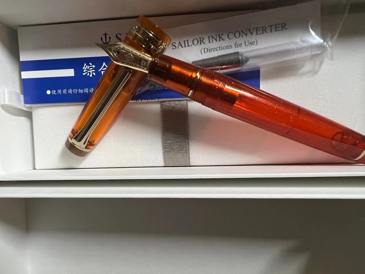 잘 만든 만년필 중 하나인 프로페셔널 기어를 바탕으로 색상, 파츠의 디테일 등만 가미한 모델로, 믿고 쓸 수 있는 세일러의 만년필 다운 만듦새와 필기감. 21k 대형 금닙의 유려한 외관과 부드러운 필기감, 세일러 만년필 특유의 사각거리는 필기 소리 덕에 눈과 귀와 손, 그리고 마음이 즐거운 만년필...이지만 역시 데몬은 내 취향이 아니다.