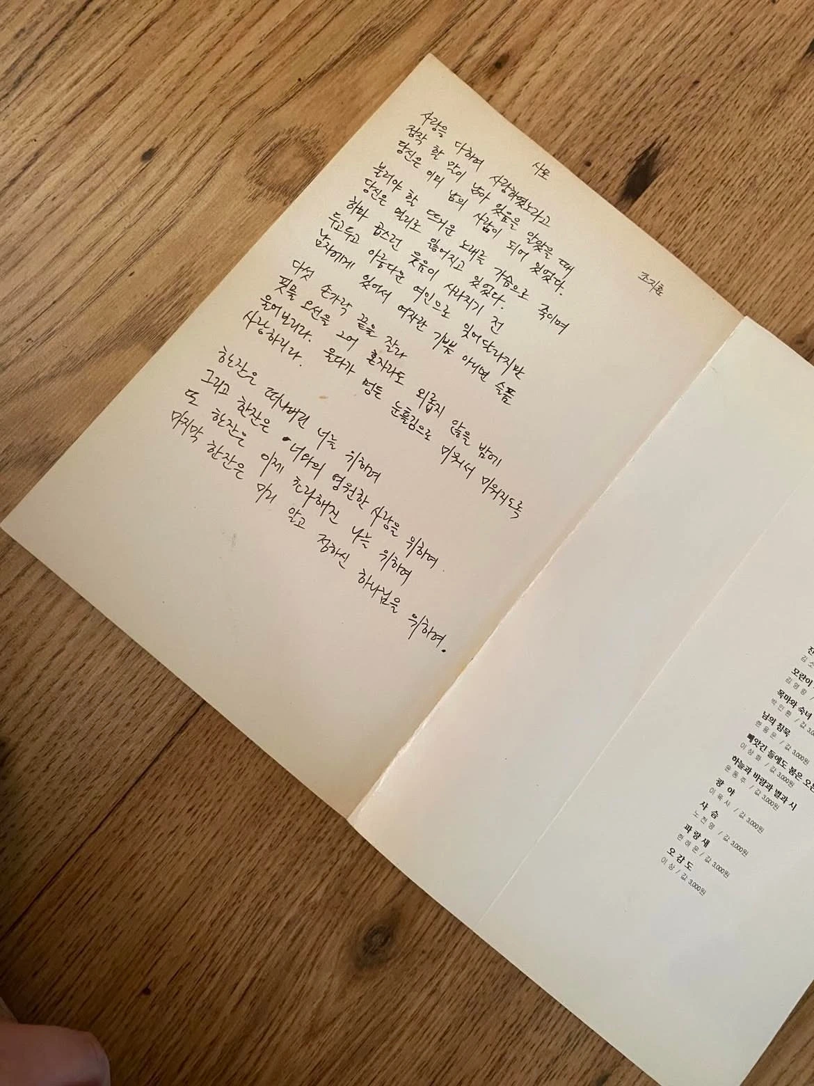 윤동주 님의 시 몇 번을 읊어주신 뒤 당신께서 가장 좋아하는 시를 알려주시겠다며 새로 산 시집 여백에 써 주신 조지훈 님의 ‘사모’.