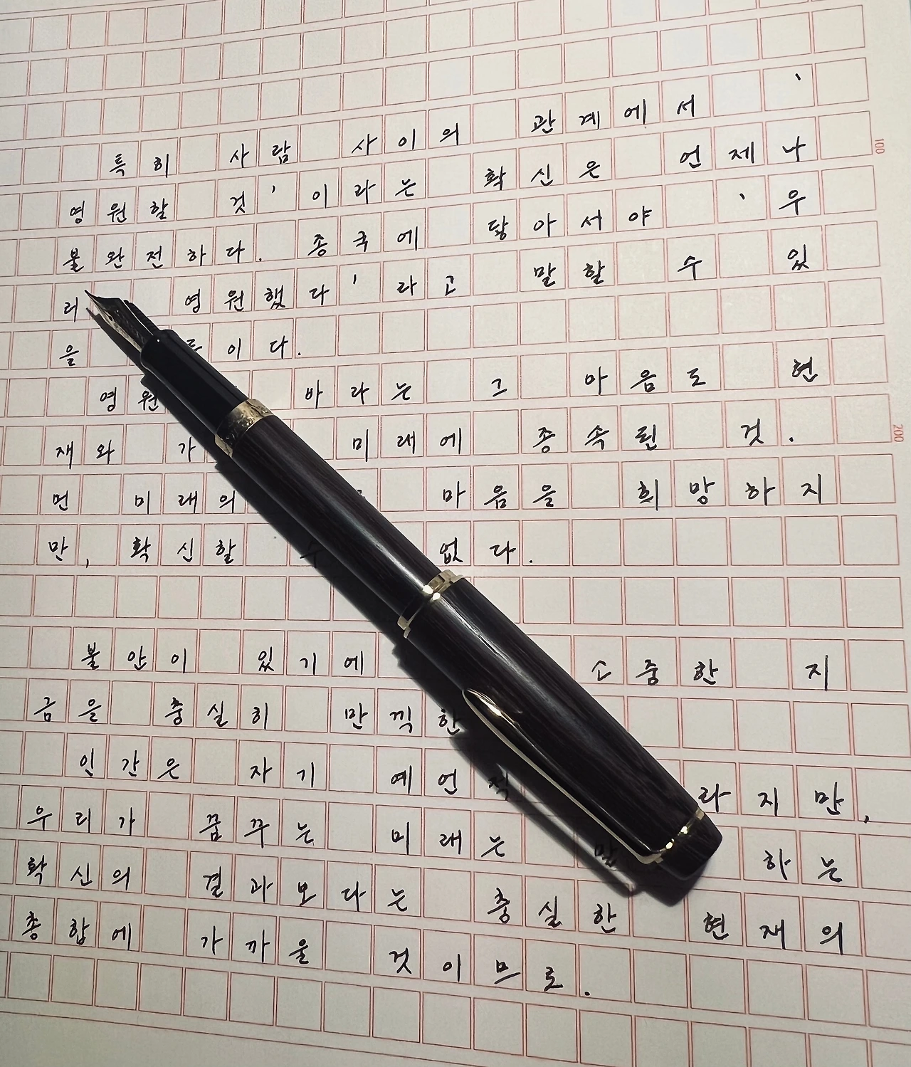 어떤 이들은 뭘 그렇게까지 하느냐, 귀찮지 않느냐 물어오기도 한다. 만년필을 좋아하는 나로서는 편리의 포기에 따른 긴 호흡까지도 헤리티지, 온전히 만년필을 소유하는 즐거움이다. 컴퓨터 키보드나 터치 펜, 볼펜에서는 느낄 수 없는 특별한 매력이다.