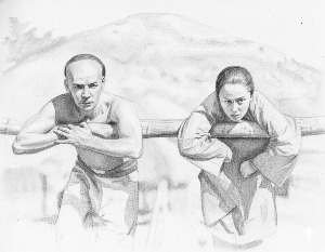 가뭄과 기근의 고통을 함께 견디는 왕룽과 아내 오란