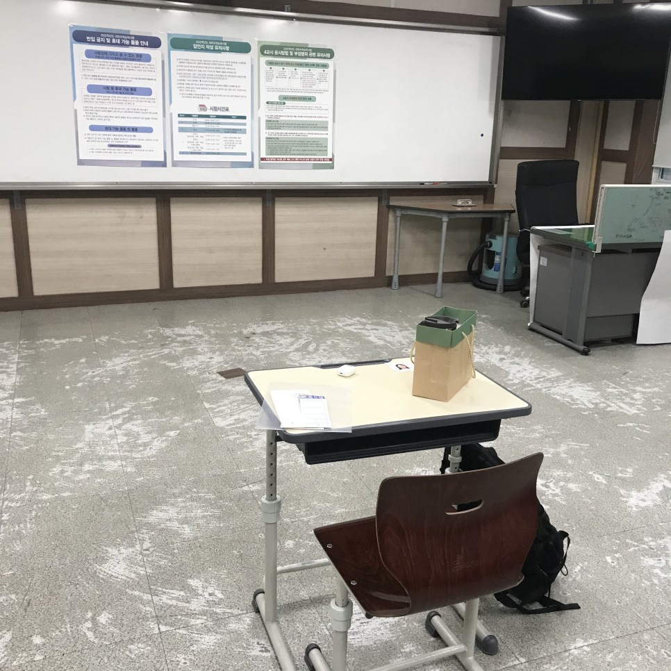 수능장에 도착하고 로비에 들어가면서 안내 선생님께 교육청에 미리 연락드렸다는 말을 전했다. 그러니 선생님은 자기를 따라오라고 하면서 꼭대기층으로 올라갔다. 그러면서 내가 수능 볼 교실문 앞에서 여기라고 말을 하시고 내려가셨다. 꼭대기층의 다른 교실들과 떨어진 화장실 옆의 교실이었다. '여기서 수능을 본다고?'라는 생각이 들만한 생소한 위치의 교실이었다.