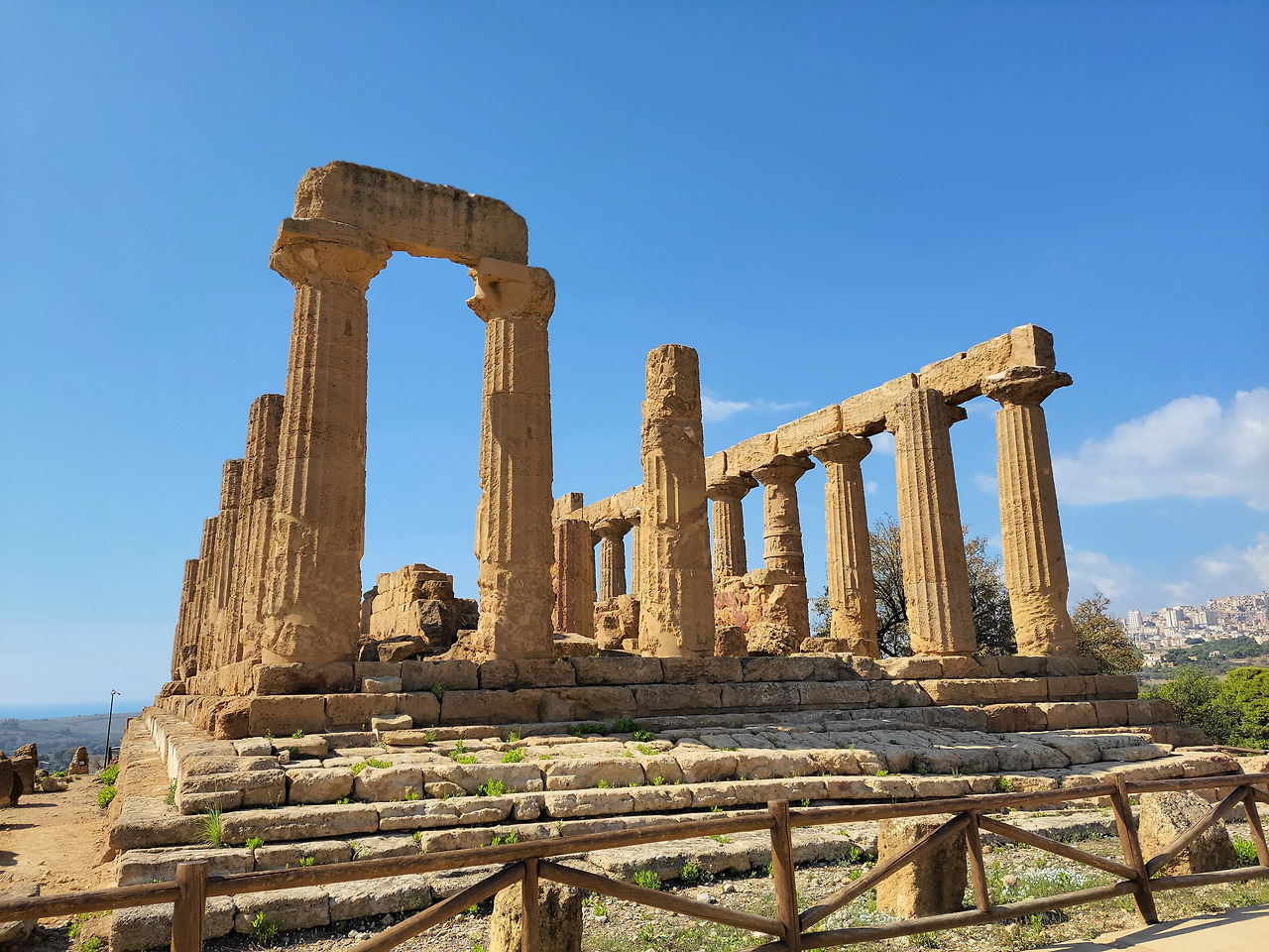 사실 유럽 전역에서, 심지어 그리스에서도 고대 그리스 유적을 만나긴 쉽지 않다. 폐허가 되어 사라진 건축은 물론이고, 그나마 남은 유적도 후대인 로마 시절에 재건축을 거쳐 어디까지가 그리스 시절 것이고 어디가 로마 시절에 개축한 부분인지는 전문가가 아니라면 분간하기 어렵다. 아마 이 때문에 건축사에서도 이 시절을 그레코-로만 건축이라고 퉁쳐서 부르는 듯하다. 지중해 연안에서는 드물게 아그리젠토에는 무려 BC 5세기에 지은 고대 그리스의 신전들이 비교적 잘 남아 있다. 그것도 교과서에서 보던 그리스 초기 양식인 도리아식 건물들이다. 그동안 그리스-로마 건축은 다소 싫증이 날 정도로 자주 봤지만, 이만하면 하루를 투자할 만한 가치가 있겠다고 판단했다.