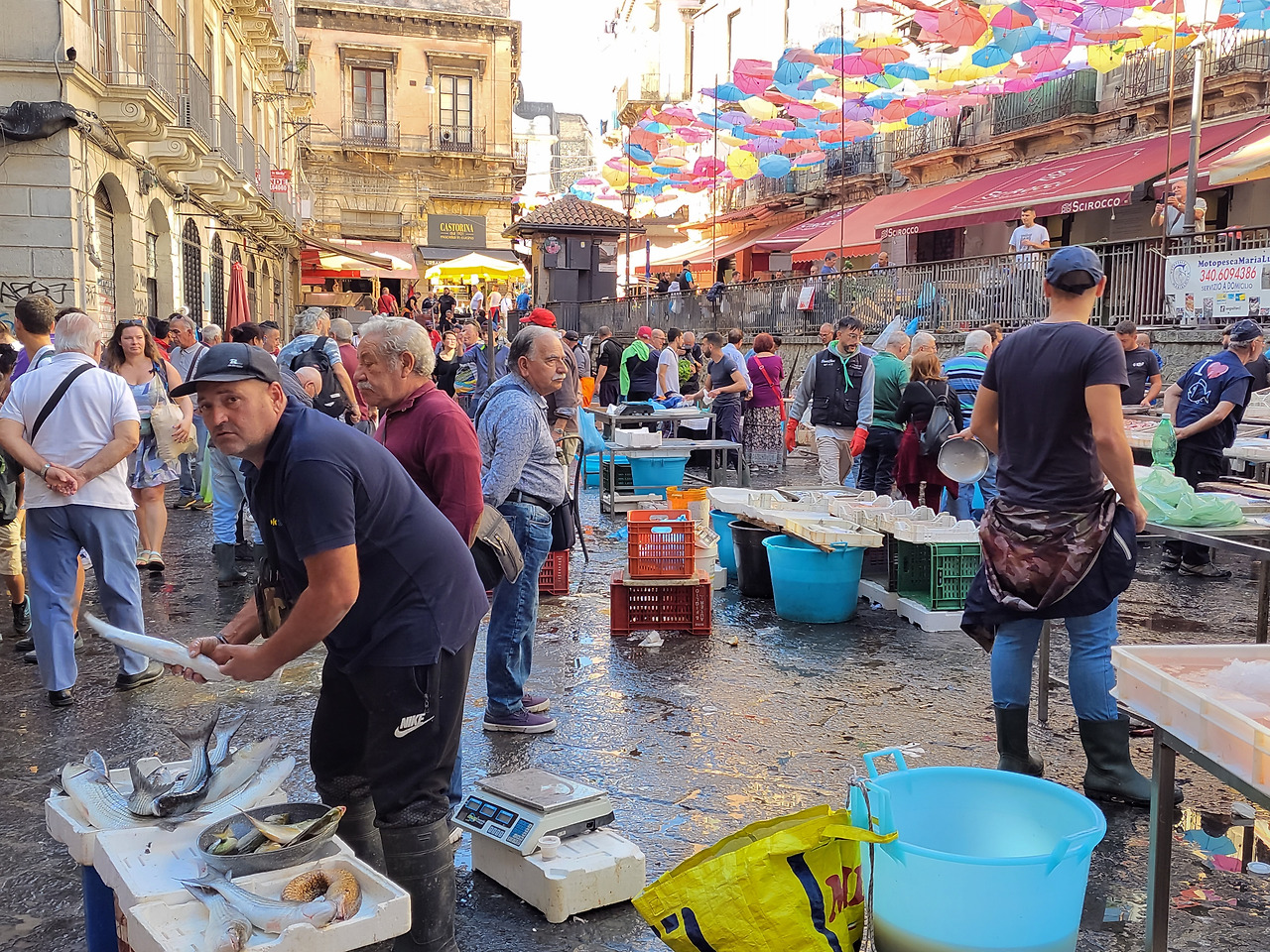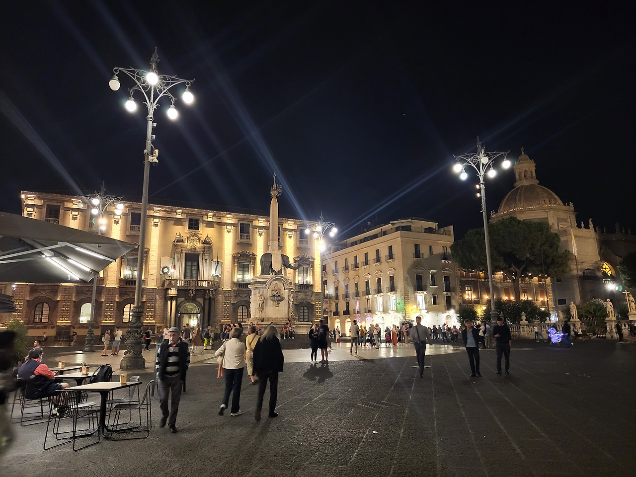 쓰라린 마음을 안고 카타니아로 돌아오니 도심의 광장 주변 건물 위로 붉은 노을이 서서히 내려앉고 있었다. 두오모 광장은 어둠이 깔리는 가운데 가로등 불빛이 낭만적인 분위기를 연출하고 있었다. 좀 이른 시간이지만 인근의 수산시장에서 저녁을 해결하기로 했다. 시장 내부를 어슬렁거리다 한적한 식당에 자리를 잡았다. 메뉴판에 해물특선으로 적혀 있길래 골랐는데, 일종의 모둠회가 나왔다. 유럽에서도 회를 먹는다는 사실은 전혀 새로운 발견이었다. 때로는 여행에서는 사전 지식과 경험을 무시하고 이전의 틀에서 벗어나 보는 것이 경험을 쌓는 데는 역시 유익한 모양이다.