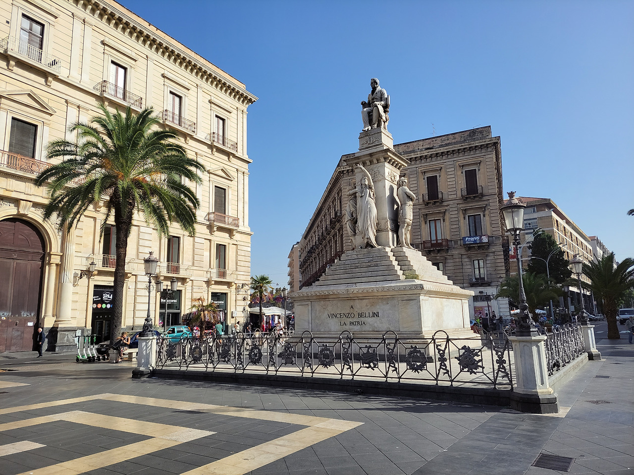 스테시로코 광장 가운데는 로마 시대의 원형경기장 터가 있고, 양쪽에는 성 아가사 성당과 벨리니 동상이 서 있다.